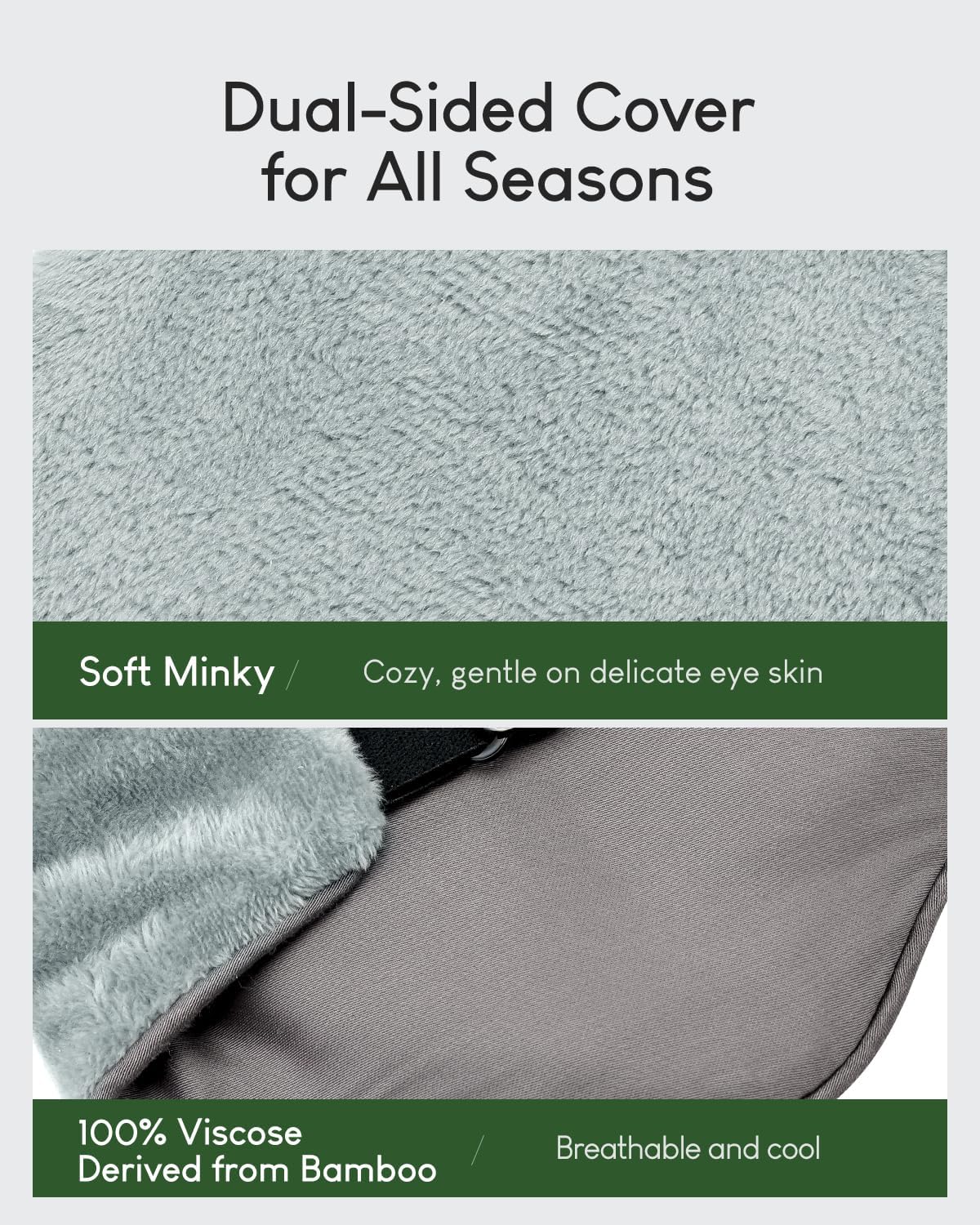 - Dual-Sided Comfort: This weighted sleep mask boasts a double-sided reversible design for year-round comfort. Enjoy the breathable, cooling fabric on one side and the soft, warm plush on the other. Certified by OKEO-TEX, it’s safe and gentle on your skin.