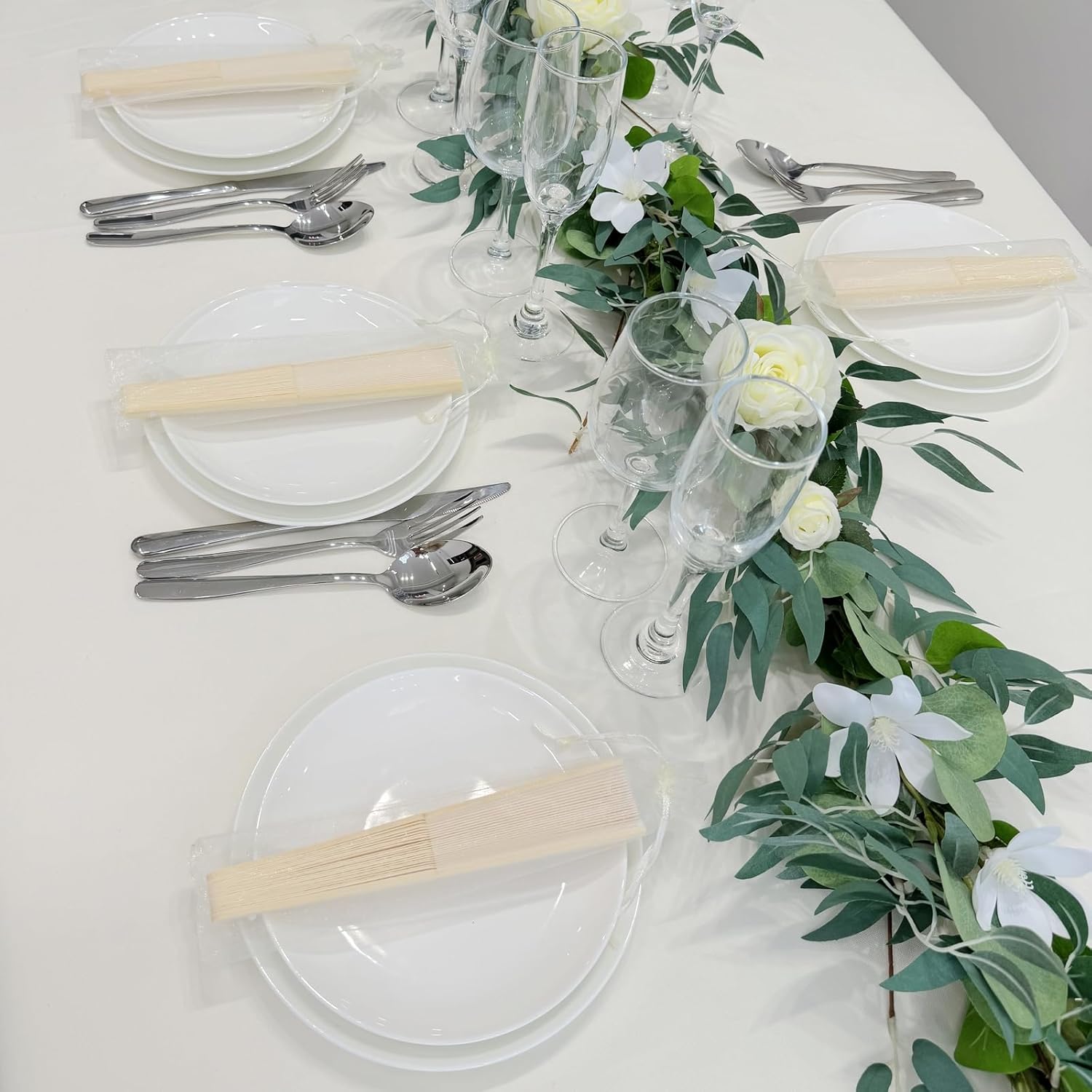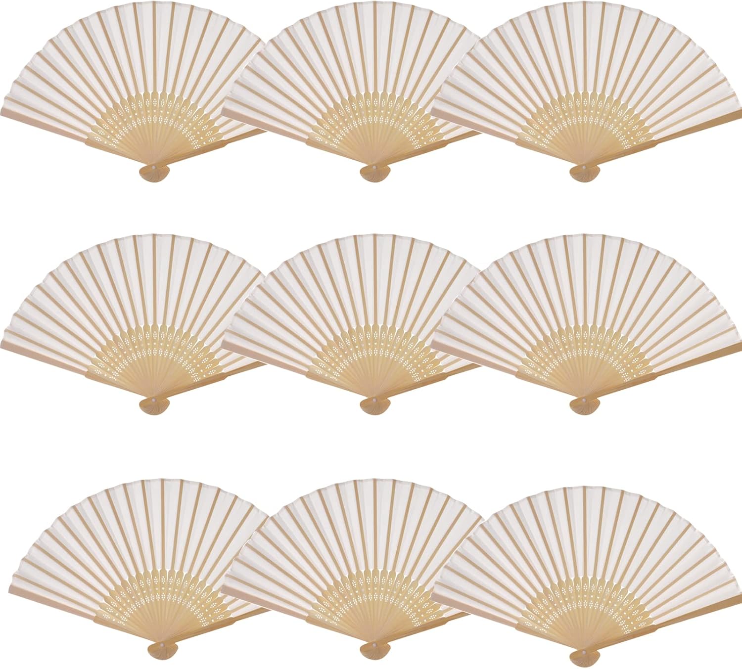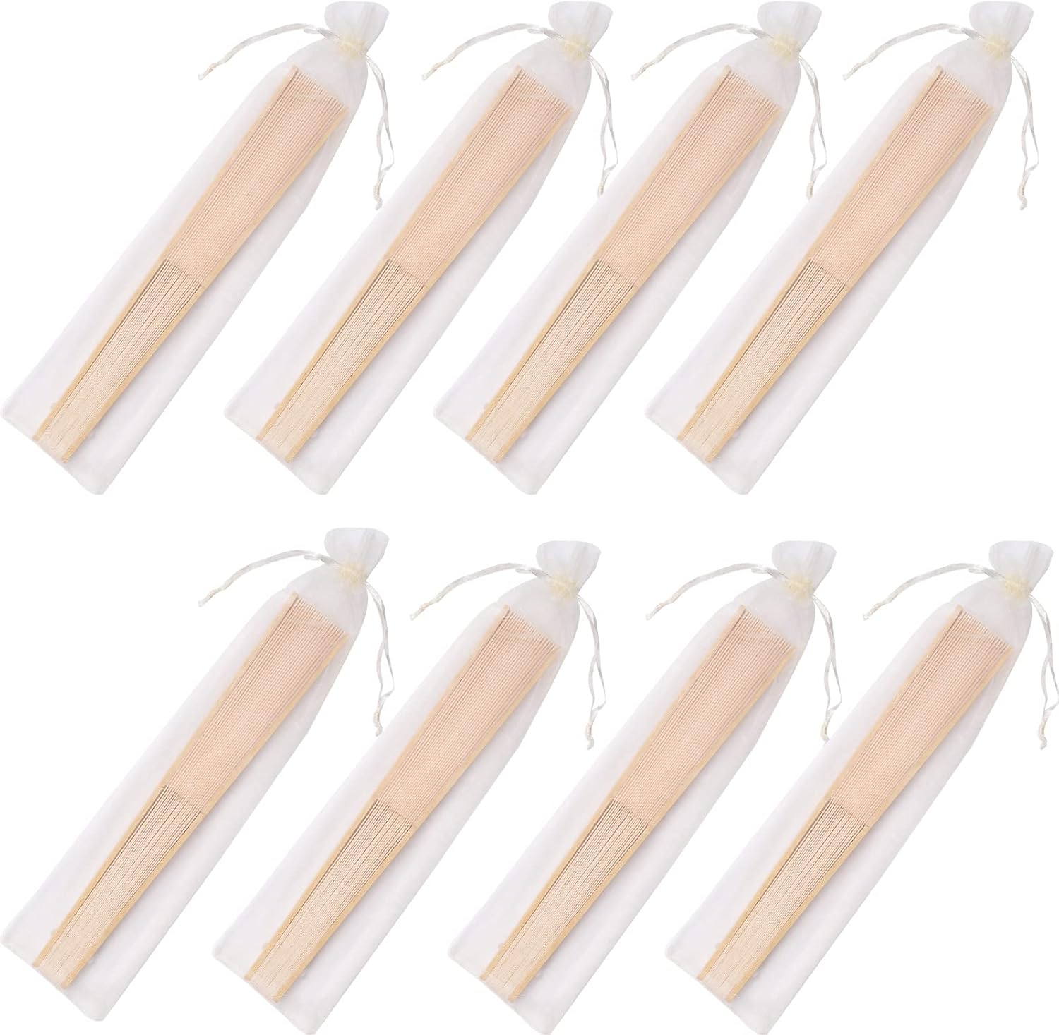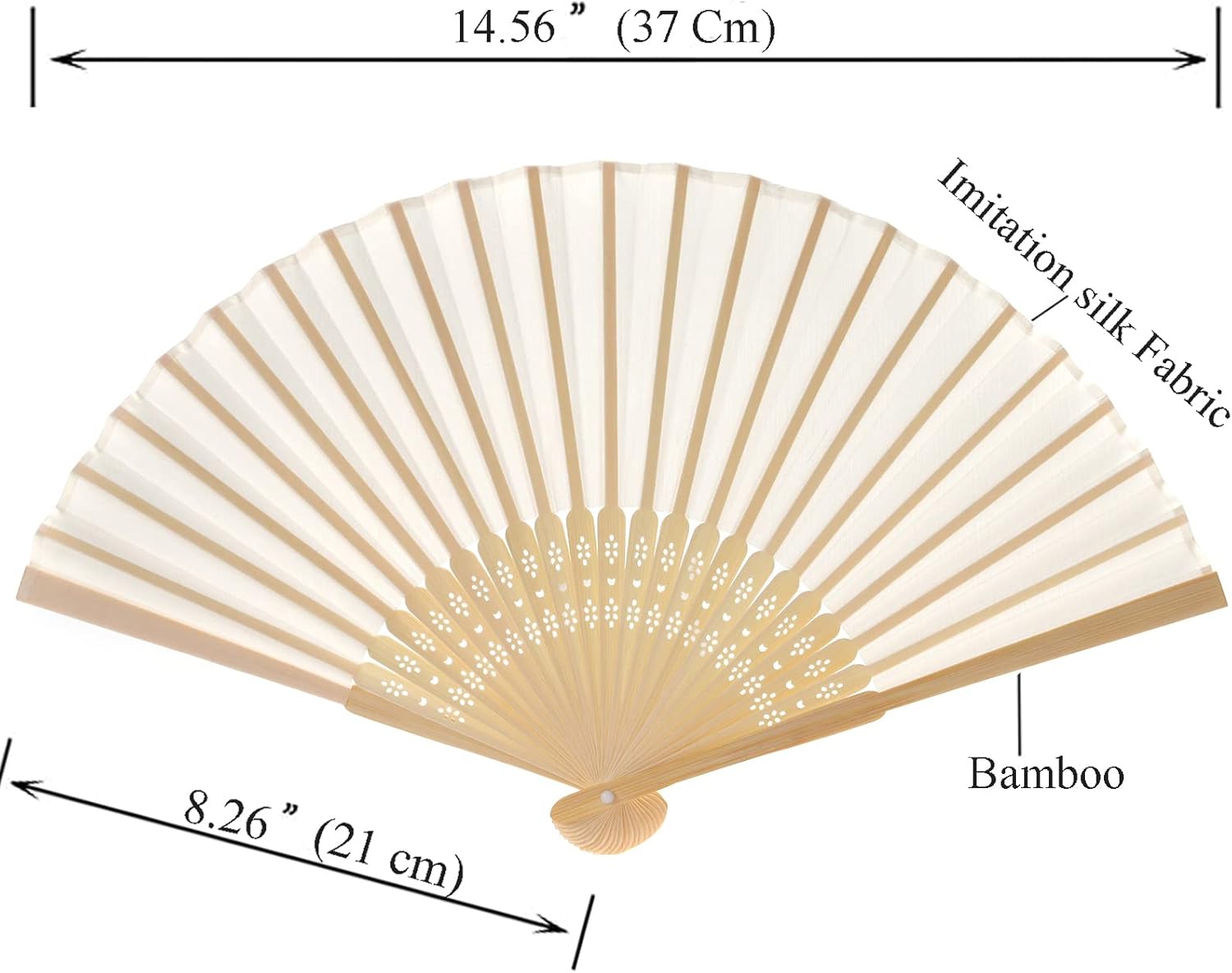 24pcs Imitated Silk Hand Fan Imitated Silk Fabric Bamboo Handheld Folded Fan Bridal Dancing Props Church Wedding Party Favors with Organza Bags (Cream)