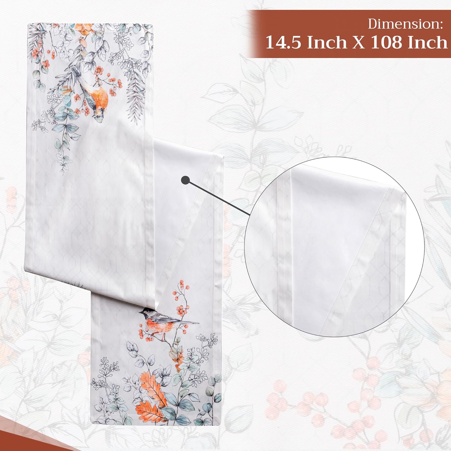 - Package Includes: 1 table runner measuring 14.5" x 108", made from 100% cotton. Ideal for banquet tables, dining tables, or adding a spring, Thanksgiving, or Christmas touch to your party decor. This 108-inch table runner brings unique charm to both casual and festive settings