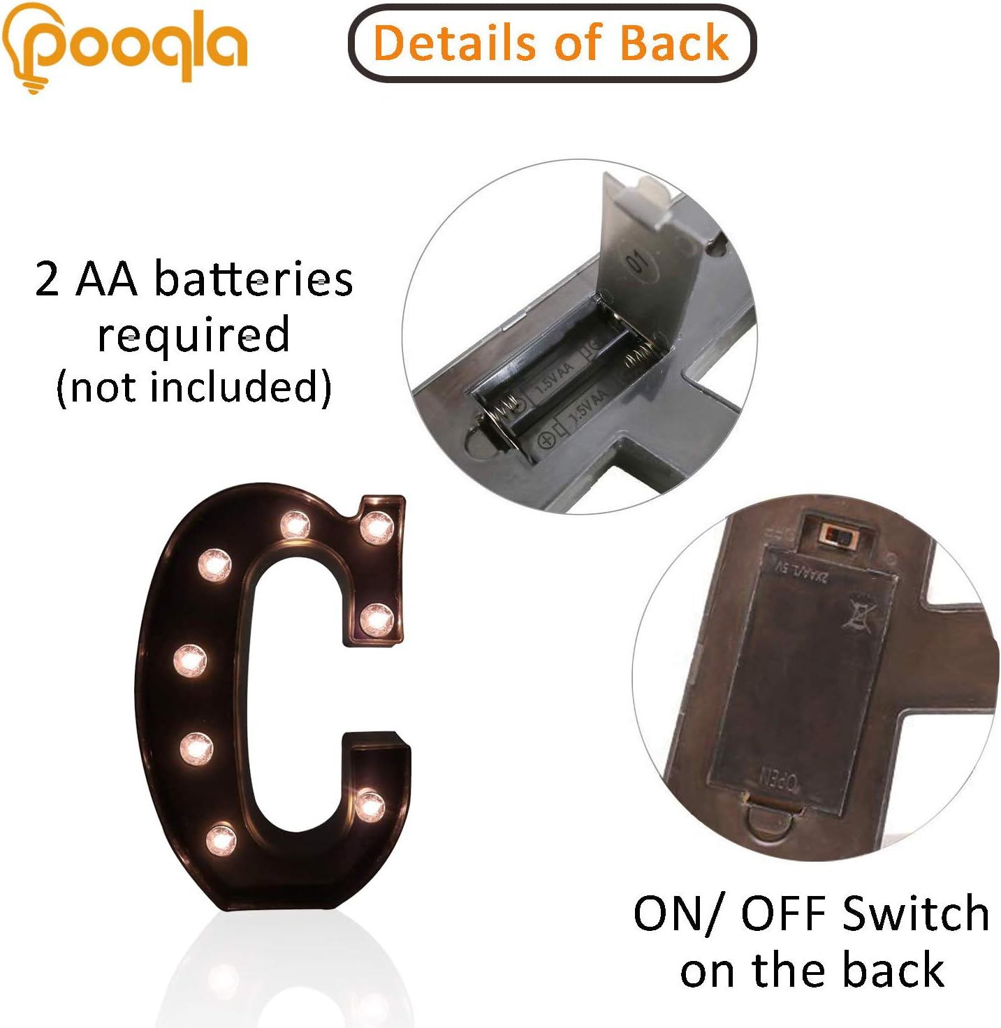 Pooqla Decorative LEDs Illuminated Letter Marquee Sign - Alphabet Marquee Letters with Lights for Wedding Birthday Party Christmas Night Lights Lamp Home Bar Decoration C, Black