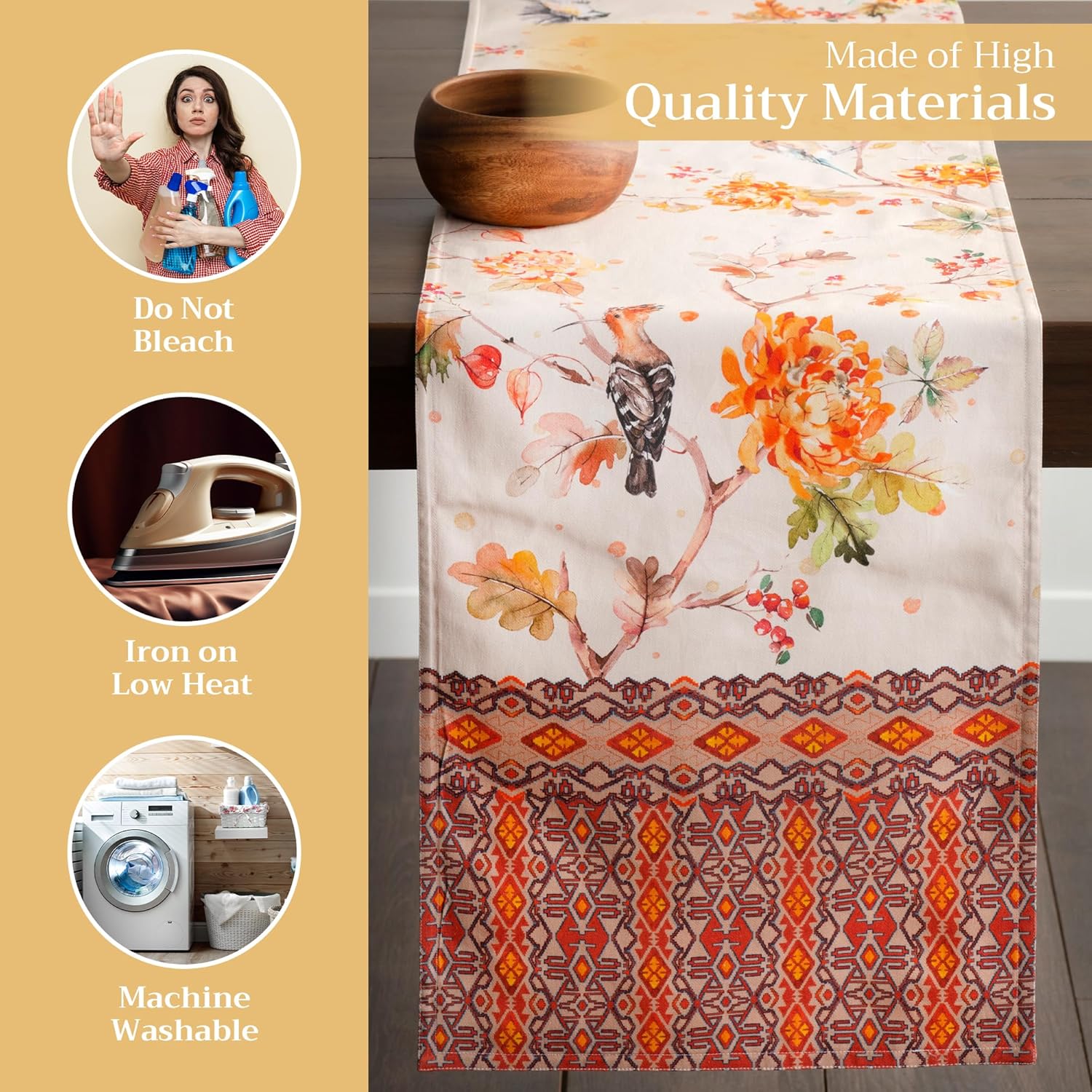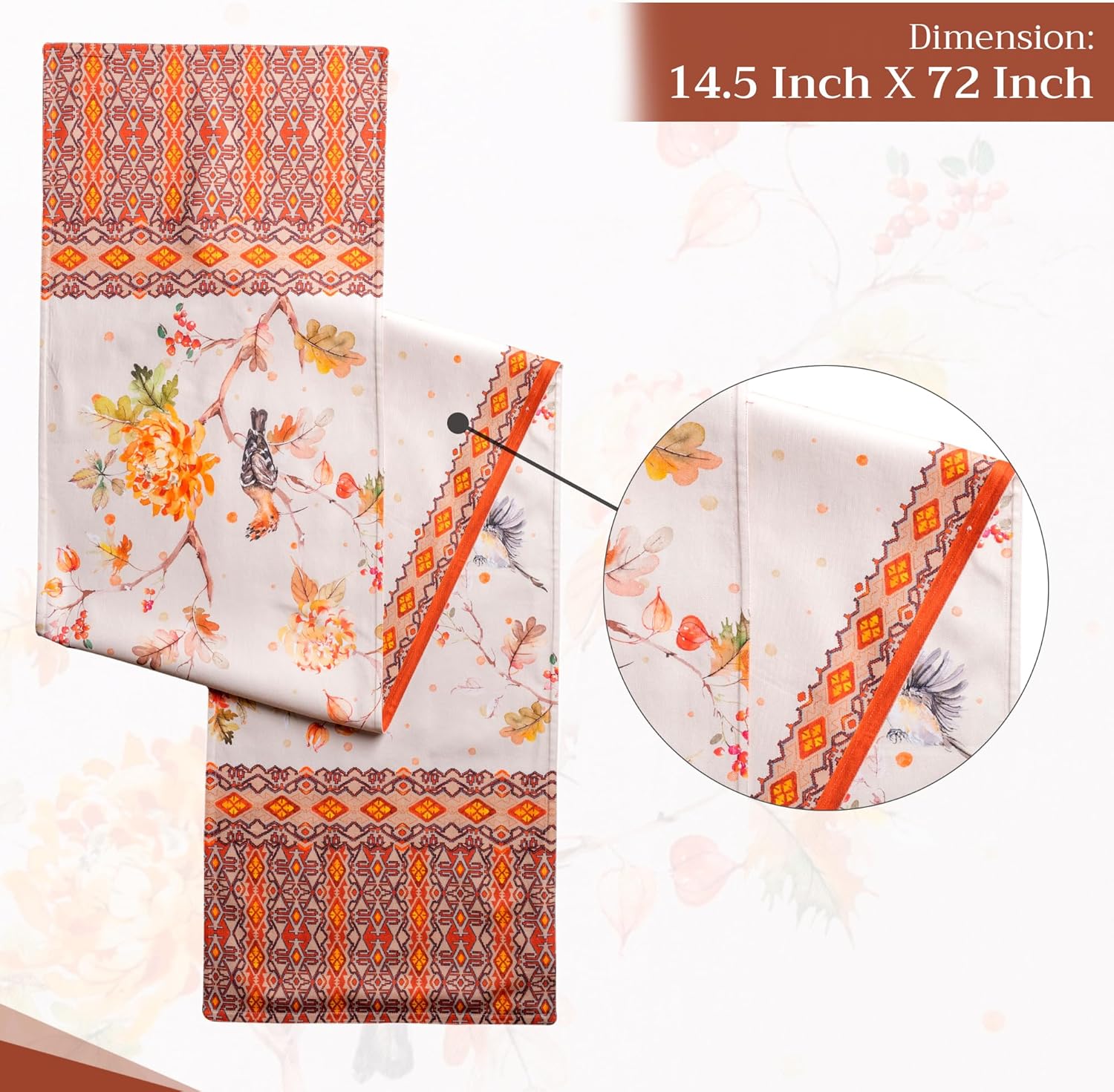 - Enhance Your Home: Crafted from 100% cotton, this reusable table runner adds a warm, seasonal touch to your dining decor. Ideal for Thanksgiving, Halloween decorations, or Christmas decorations—pair it with matching linens for an elegant fall or holiday gift