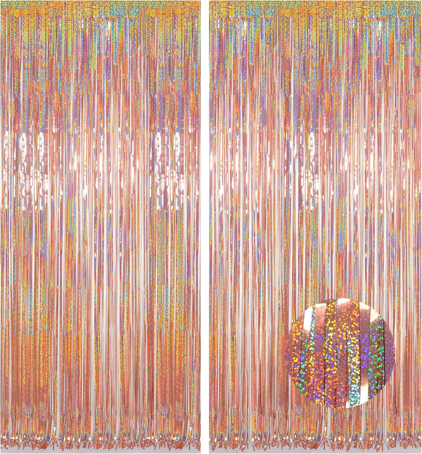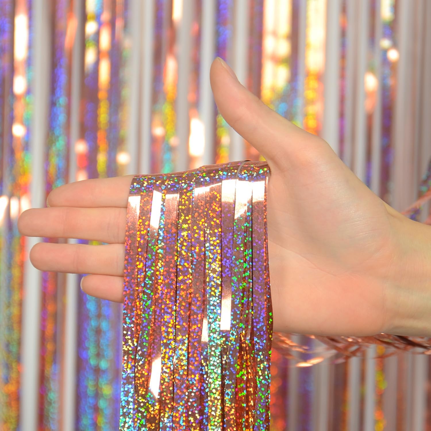 Foil Fringe Backdrop, Melsan 2 Pack 3.2 ft x 8.2 ft Tinsel Foil Fringe Curtains, Sparkle Fringe Curtains for Bachelorette Party Decorations Photo Background Decoration, Rose Gold
