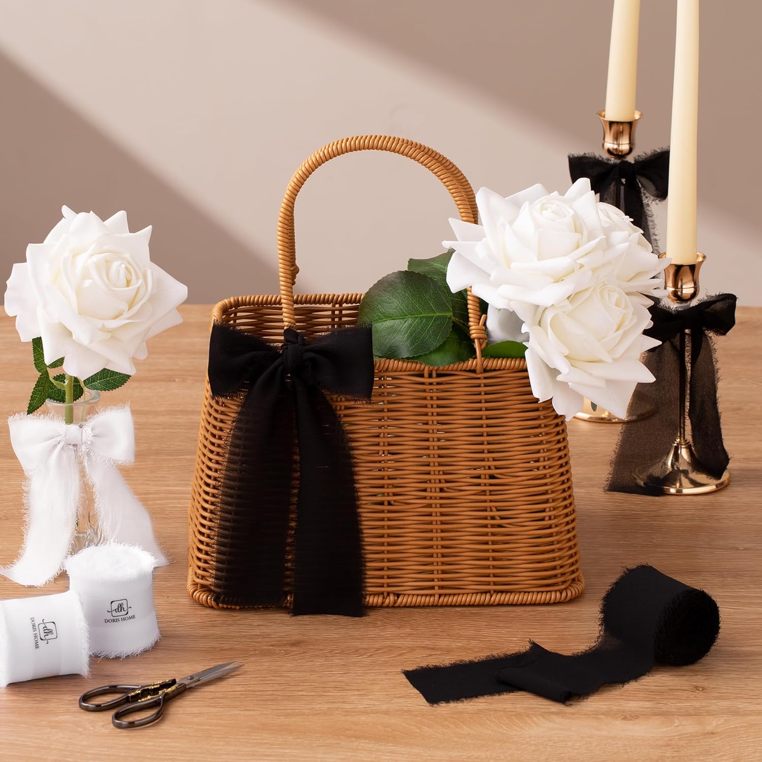 - 【Multiple Applications】This chiffon silk ribbon is great for gift wrapping, wedding decorations, wedding invitations, birthday parties, holiday celebrations, bridal showers, newborn photography props, wedding aisle backgrounds, boutonnieres, flower girl baskets, bouquet wrapping ribbons, Easter baskets, and even Christmas gift wrapping. Its elegant appearance makes it an ideal choice for bohemian or rustic DIY projects.