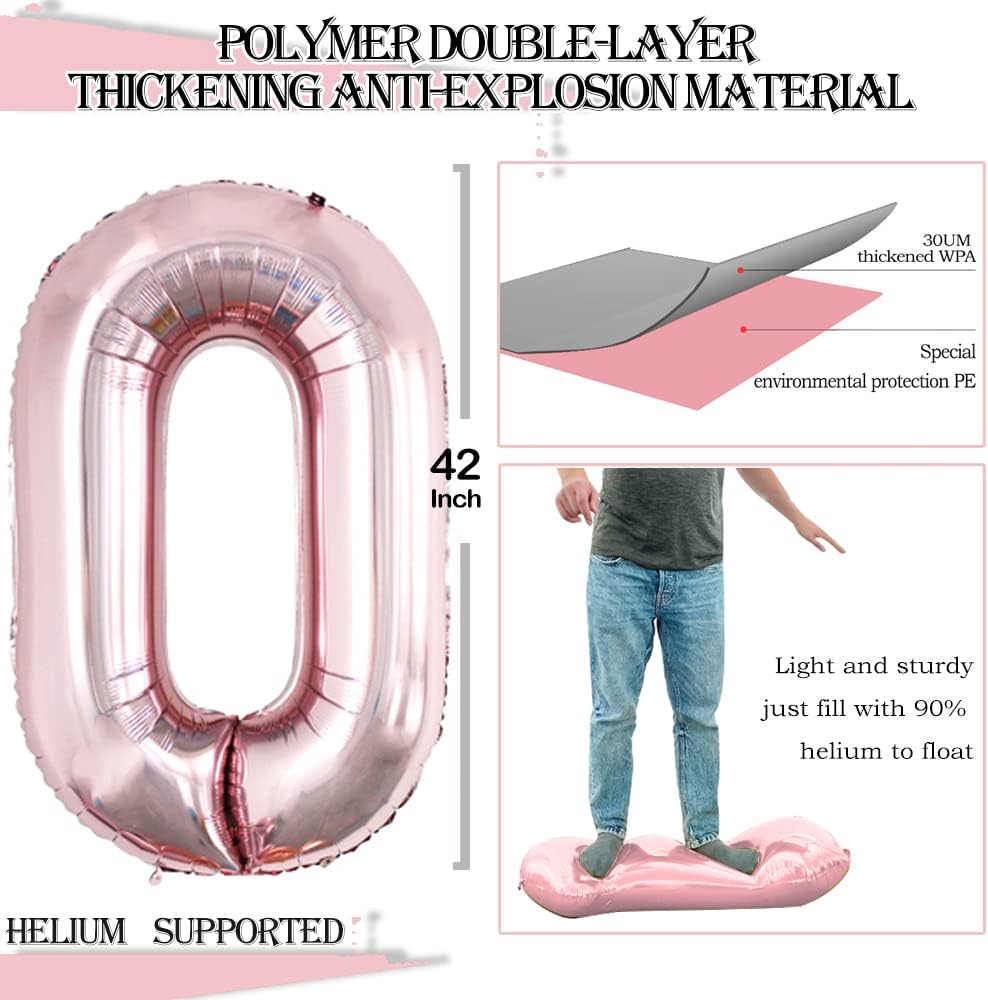 GOER Rose Gold Foil Balloons Number 0 for 10th 20th 30th 40th 50th 60th 70th 80th 90th 100th Birthday Party Supplies Anniversary Decorations(3 pcs,42 inch,32 inc,16inch)