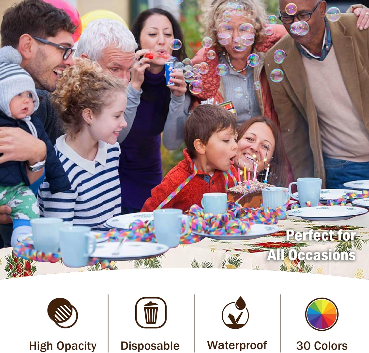 Party Solids Pack Of 12, Premium Rectangle Holiday Design Plastic Tablecloth - Christmas Decorations Tablecloth Disposable Plastic Table Cover for December - 54 inch. x 108 inch