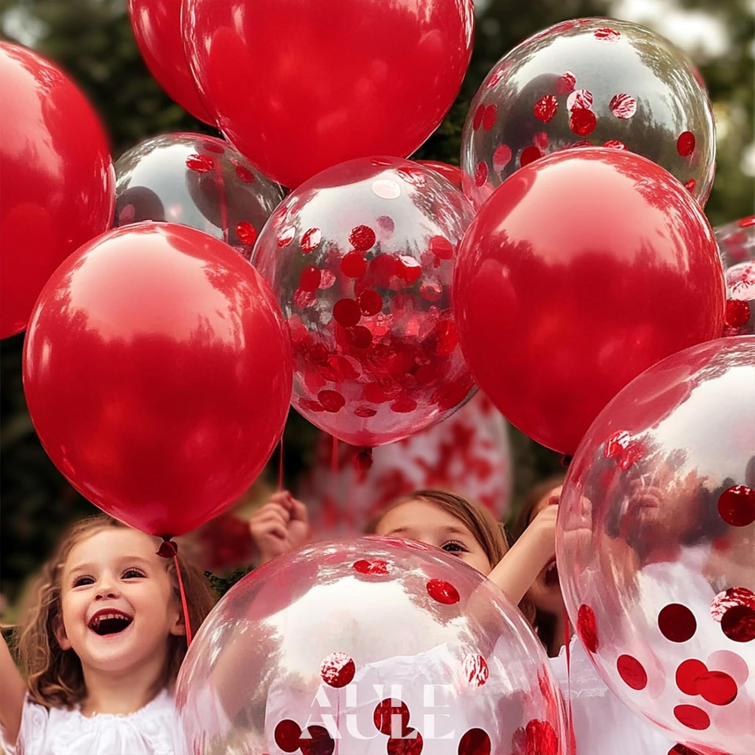 AULE Party Balloons Pack of 42-12in Red Confetti Balloons & Red Latex Balloons and 64ft Ribbons - 12 Inches Balloons Decorations Set