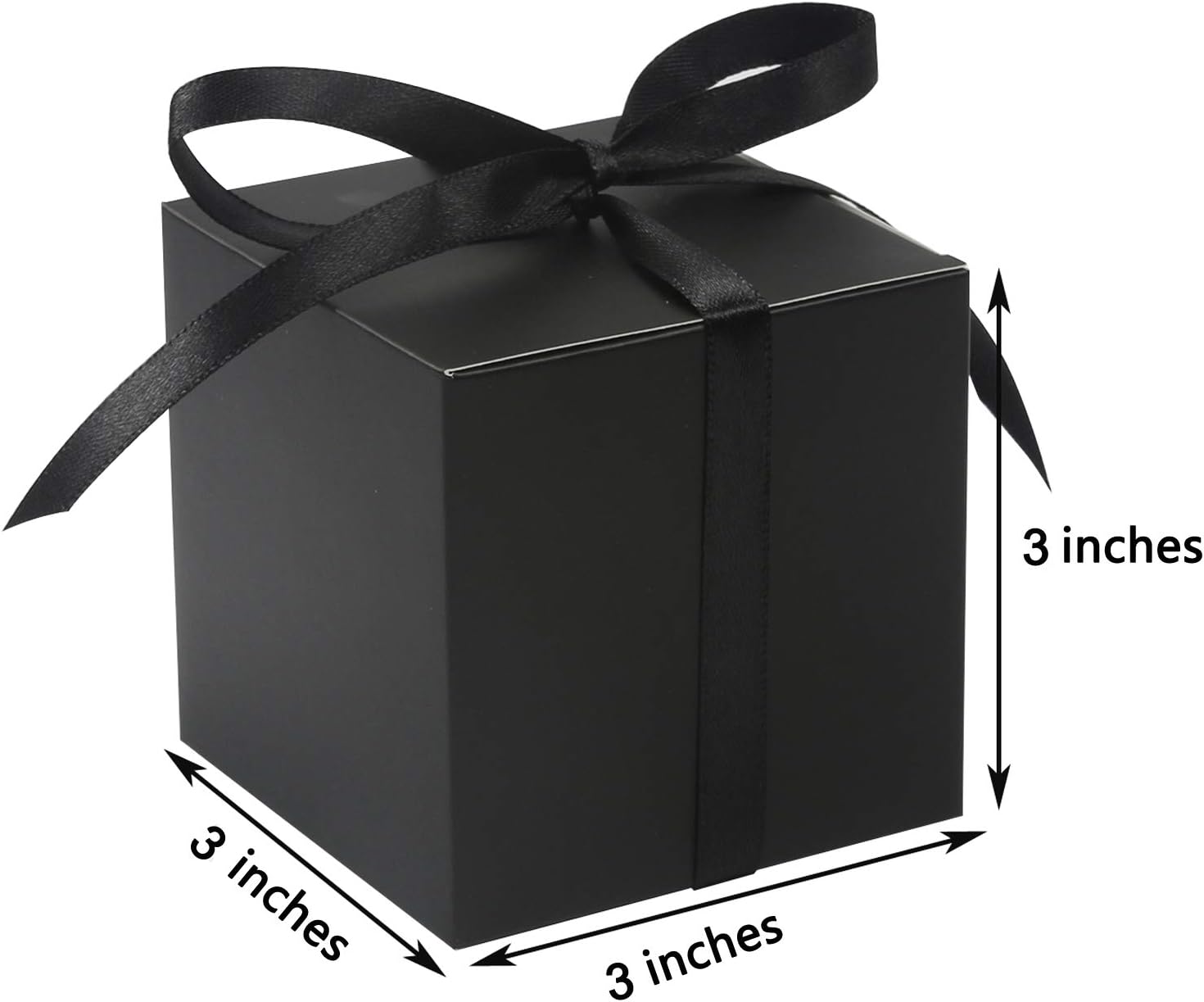 COTOPHER 100pcs Wedding Favor Boxes, Paper Gift Boxes 3x3x3 Inches Small Gift Boxes with Ribbons Small Boxes for Gifts, Crafting, Cupcake, Candy, Bridesmaid Proposal Boxes,Easy Assemble Boxes (Black)