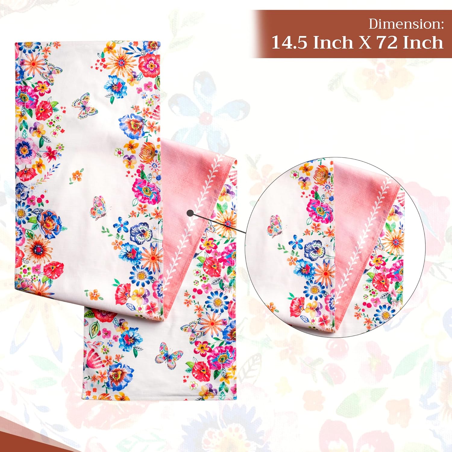 Maison d' Hermine Table Runner 100% Cotton Double Layer Table Runners 72 inches Long Decorative for Home Dining Party Wedding Bridal Shower Spring Summer (Happy Florals - High Summer, 14.50" x 72")