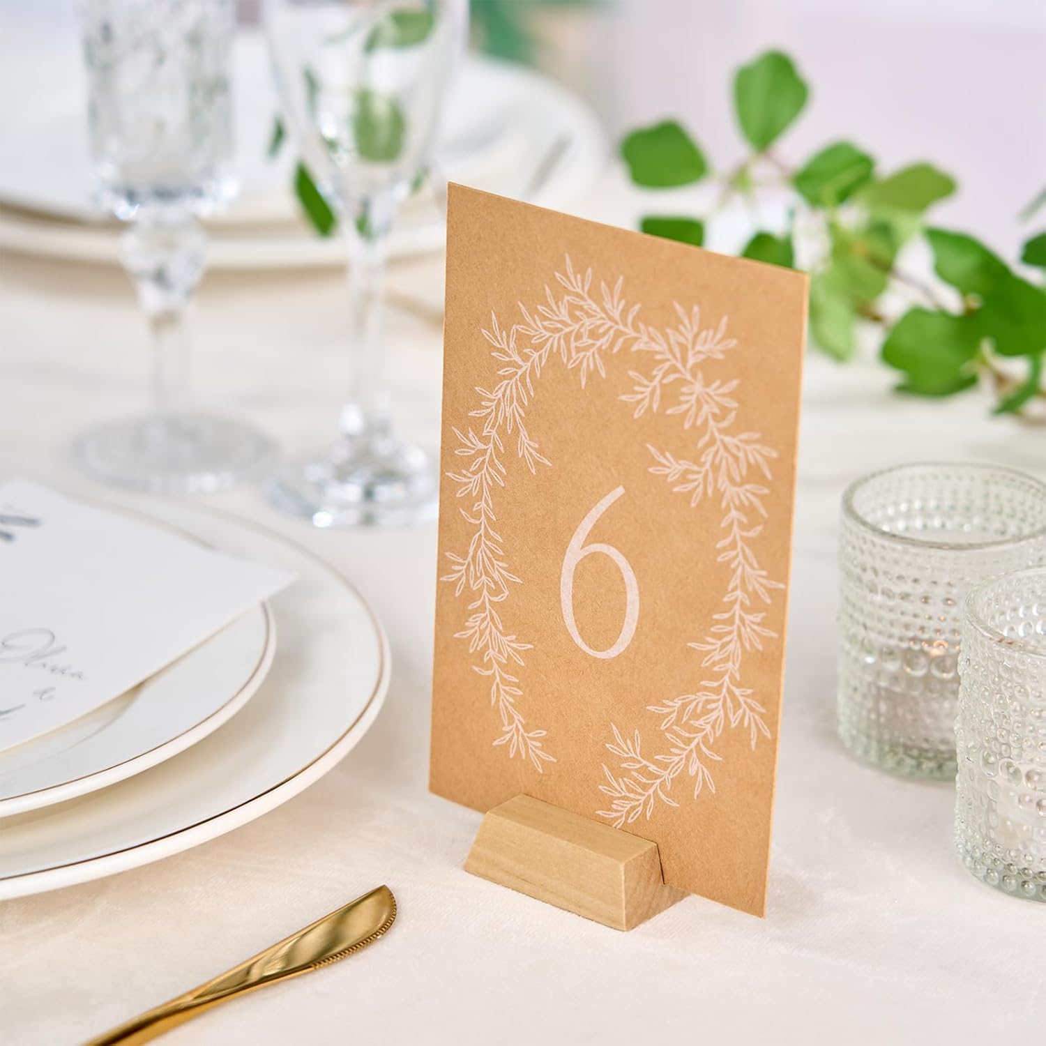 - Package Includes - A set of 12 Birch Wood Stand Holders; Dimensions: 1.9 x 1.9 x 0.6 inches with 1.2mm slot. Please note that all place cards and acrylic signs shown in the pictures are NOT included.