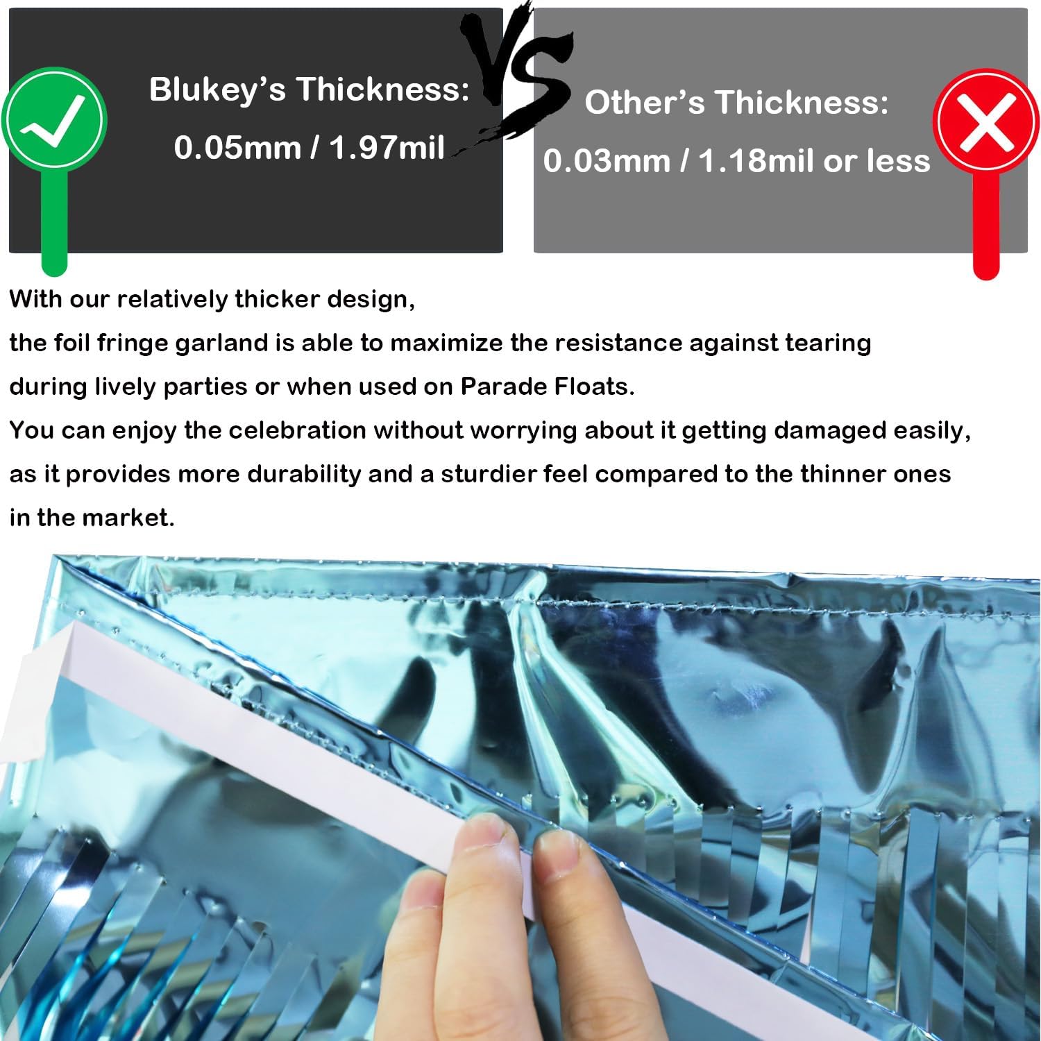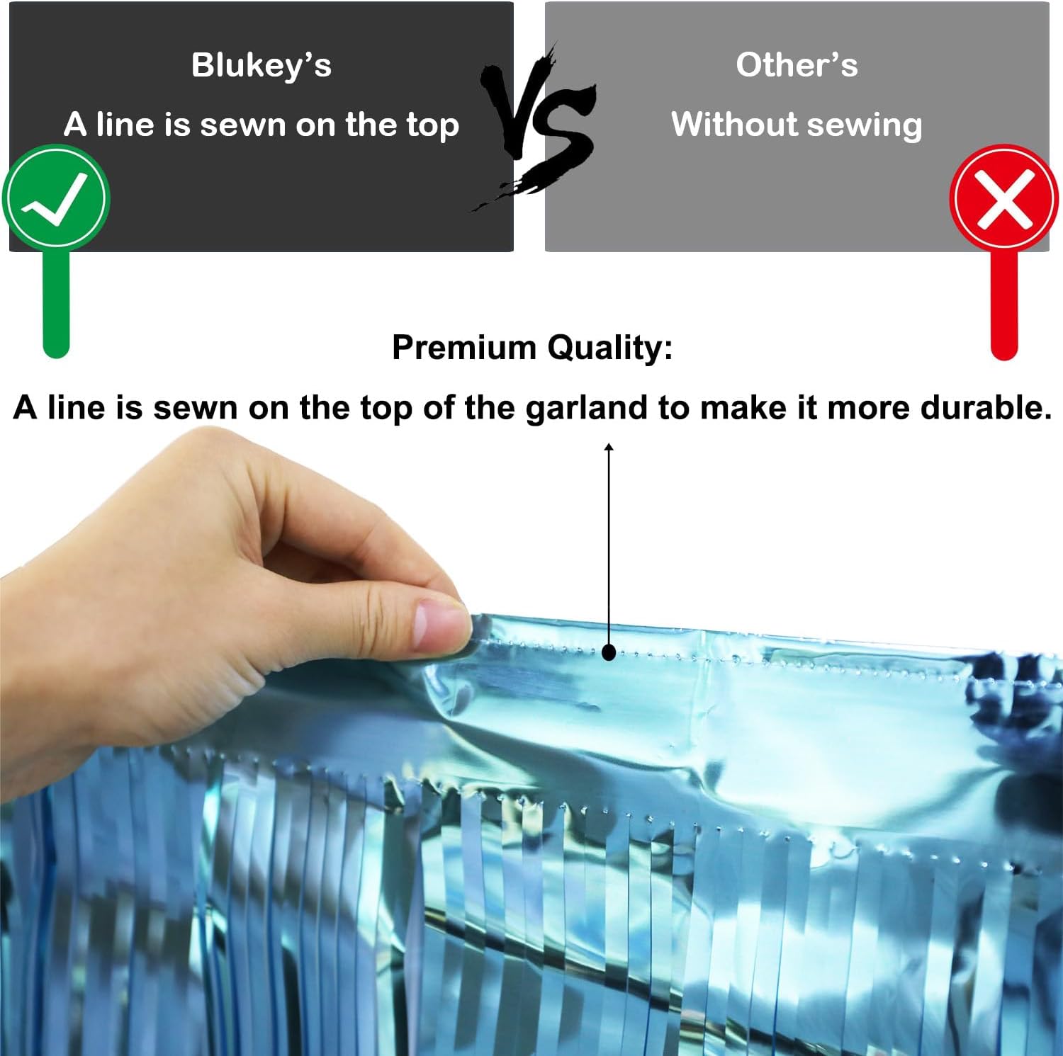 - Premium Quality: Made of high quality metallic foil, lightweight and shiny. A line is sewn on the top of the garland to make it more durable.