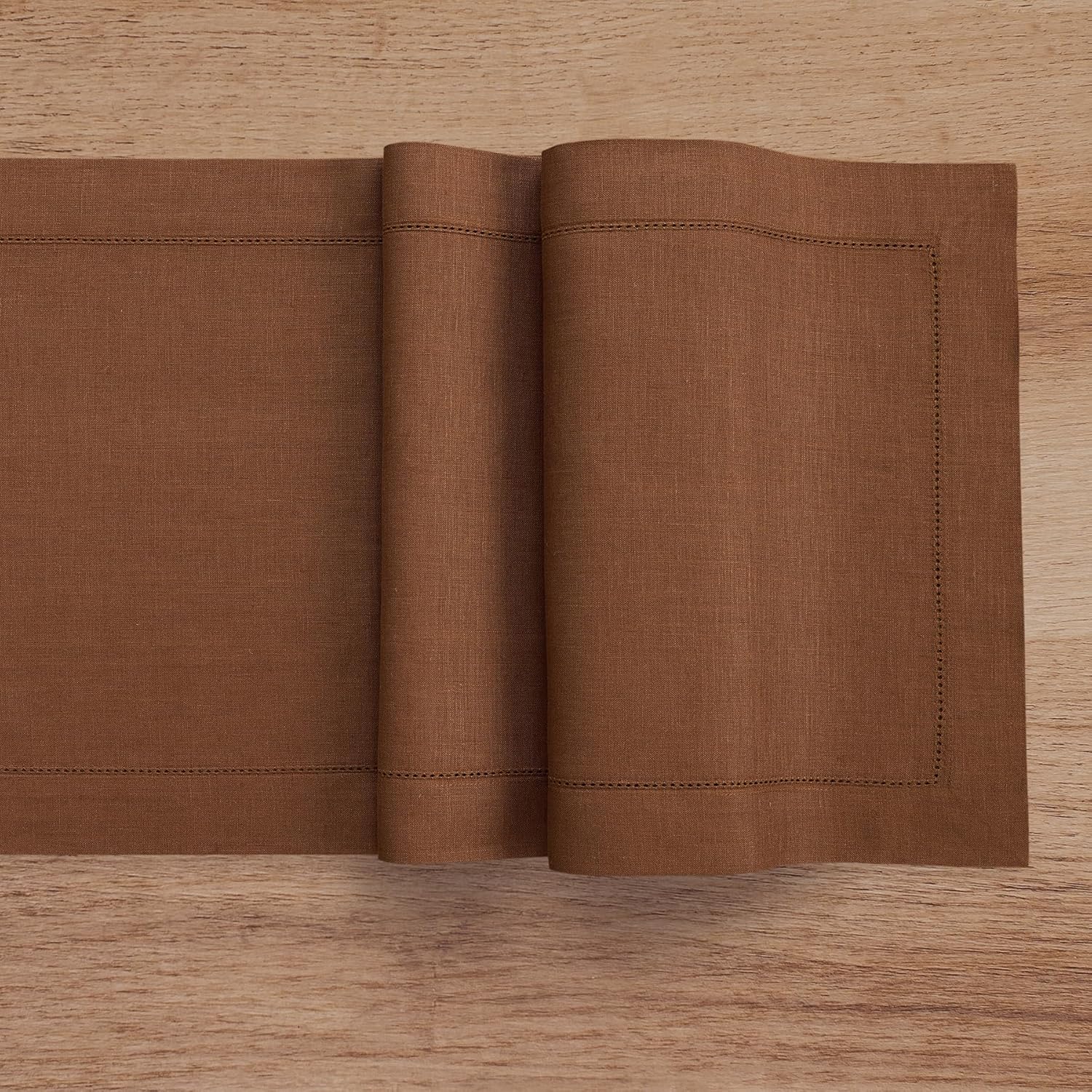 Solino Home Linen Brown Table Runner 36 Inches - Classic Hemstitch, 100% Pure Linen Coffee Table Runner 14 x 36 Inch Ideal for Dresser Tables, Fall, Autumn, Thanksgiving