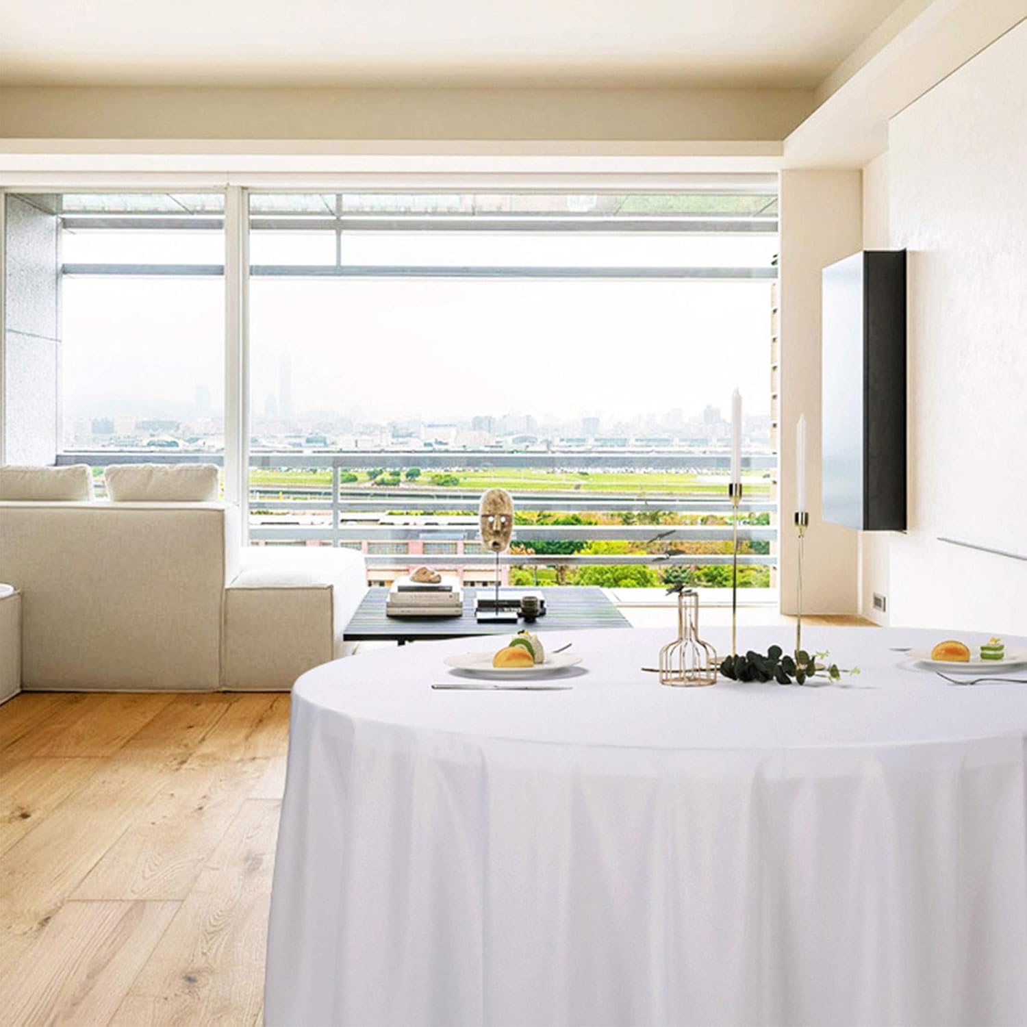Ascoza 2pack 108 Inch White Round Tablecloth in Polyester Fabric for Wedding/Banquet/Restaurant/Parties