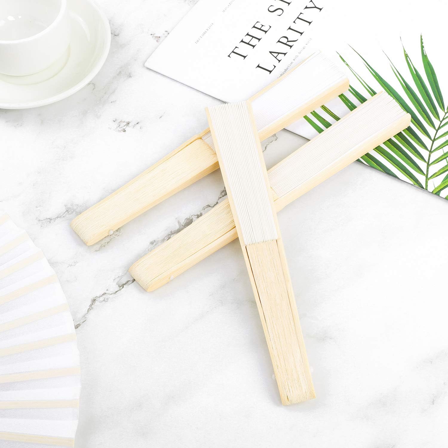 URATOT 36 Pieces White Folding Fans Silk Bamboo Folding Fans Handheld Fans for Wedding, Party Decoration