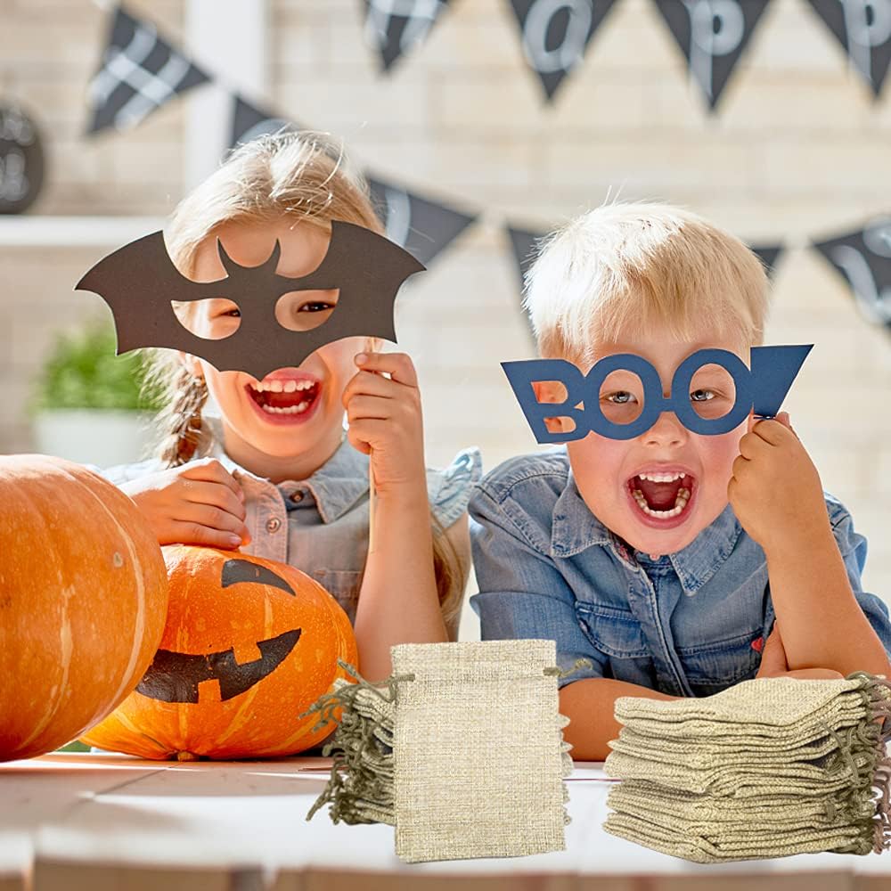 LYSXP 50PCS Burlap Bags with Drawstring,3x4 Inch Cream color Drawstring Gift Bag Jewelry Pouches for Wedding Party Favors, DIY Craft