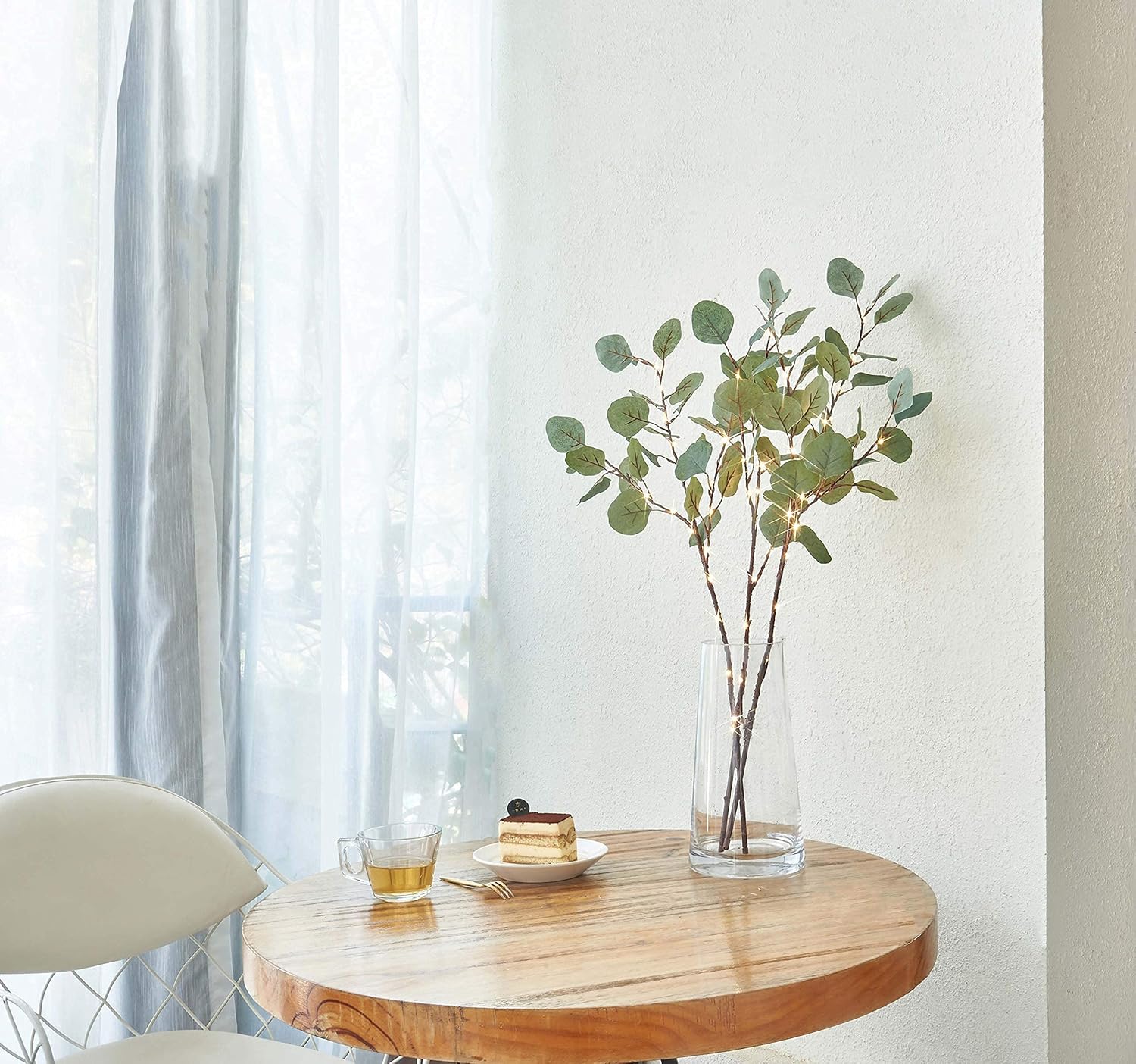 - ARTFULLY CRAFTED: Lush and organic textured eucalyptus leaves with cozy fairy lights on the twigs add a special and appealing addition to any occasion decor(insert the leaves back on the branches when falling down)