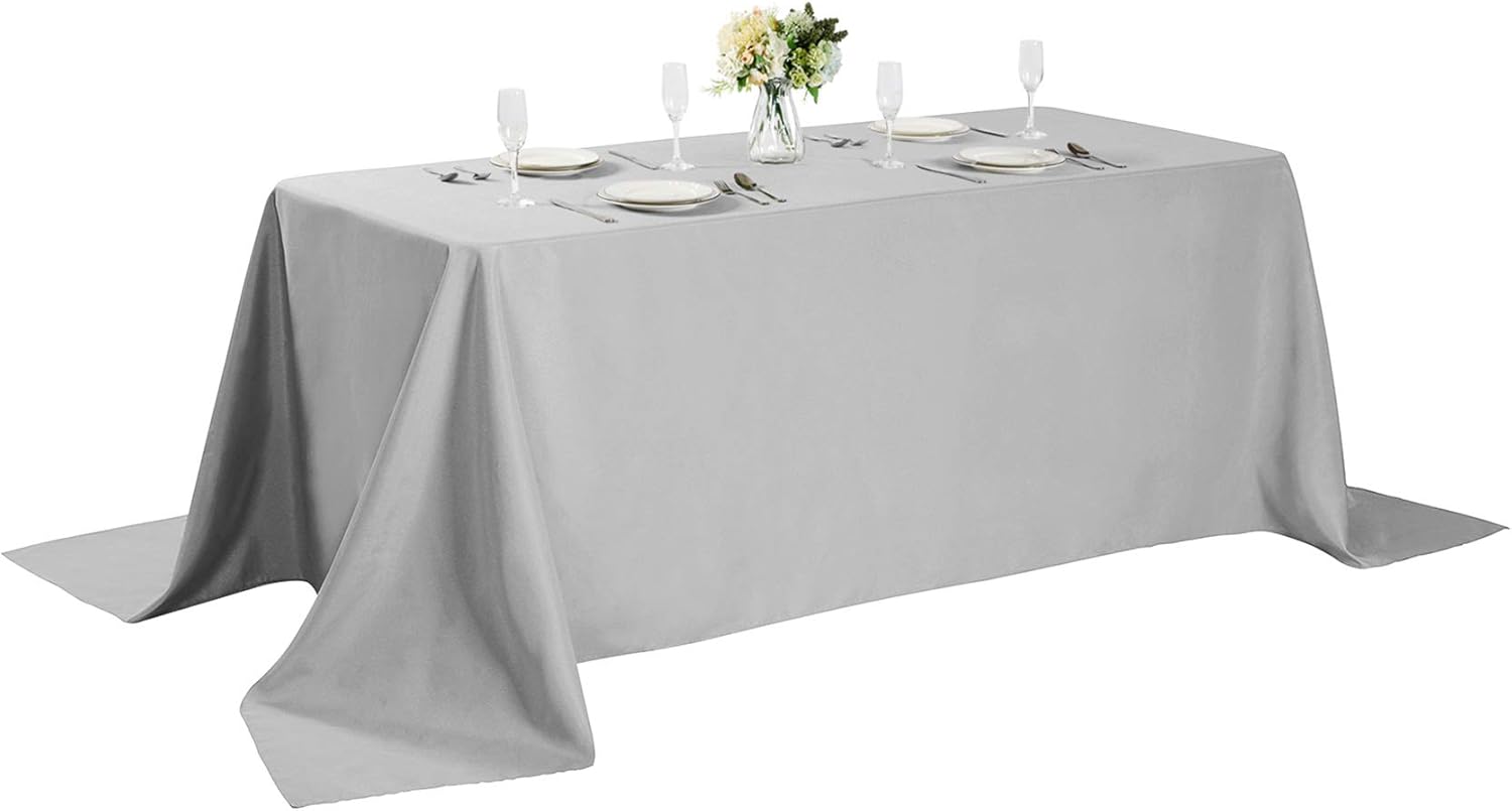 Rectangle Tablecloth 90x132 inch Washable Polyester Fabric Table Cloth for Wedding Party Dining Banquet Decoration(90x132, Silver)