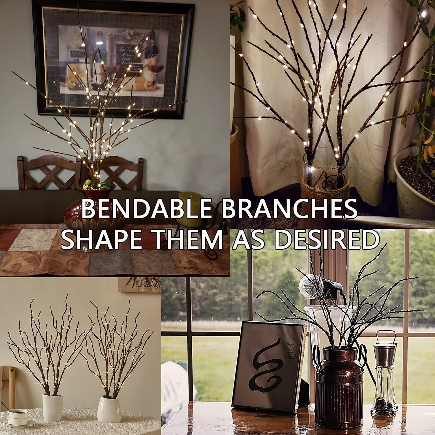 - š Artificial Birch Branch: The LED twigs covered with vivid brown willow bark texture are perfect centerpieces for wedding, party, Christmas decor,making your living bedroom like beautiful wild.(Not tape wrapped only)