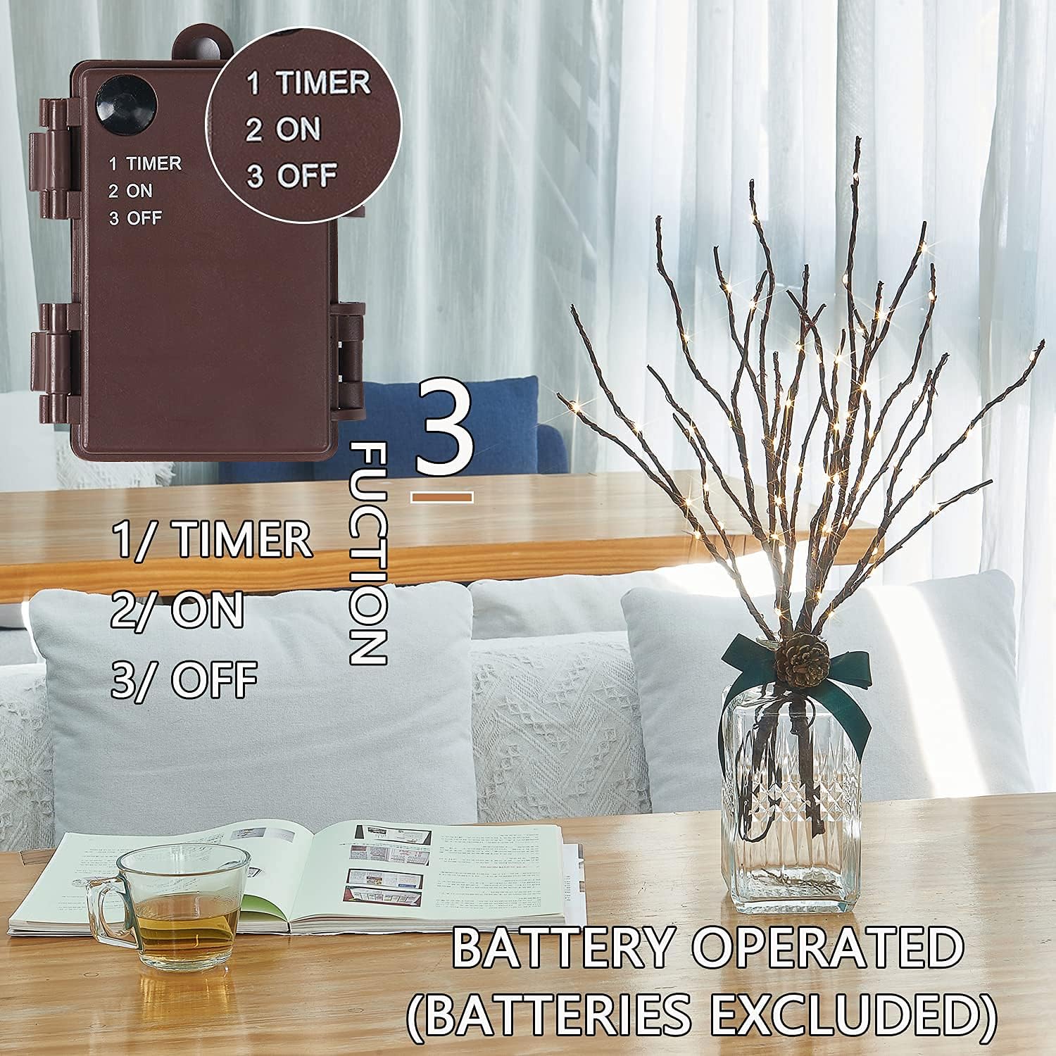 Fudios Lighted Branches with Timer 70 LED Fairy Lights 18in Battery Operated, Willow Branches with Lights for Vase Christmas Holiday Home Decor