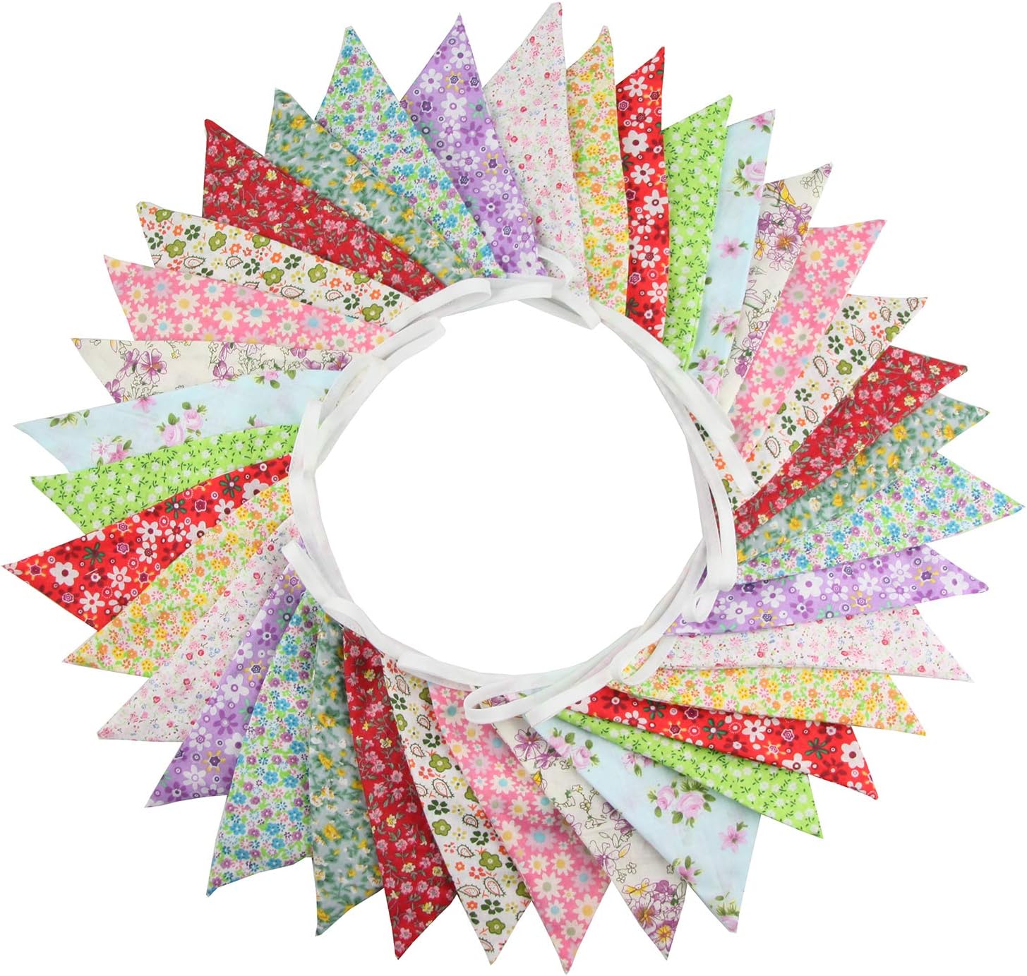 10M/32Ft Triangle Bunting Banner, 36 Pcs Cotton Fabric Flags Pennant Garlands for Birthday Party, Wedding, Baby Shower, Outdoor and Home Decorations (Colorful)