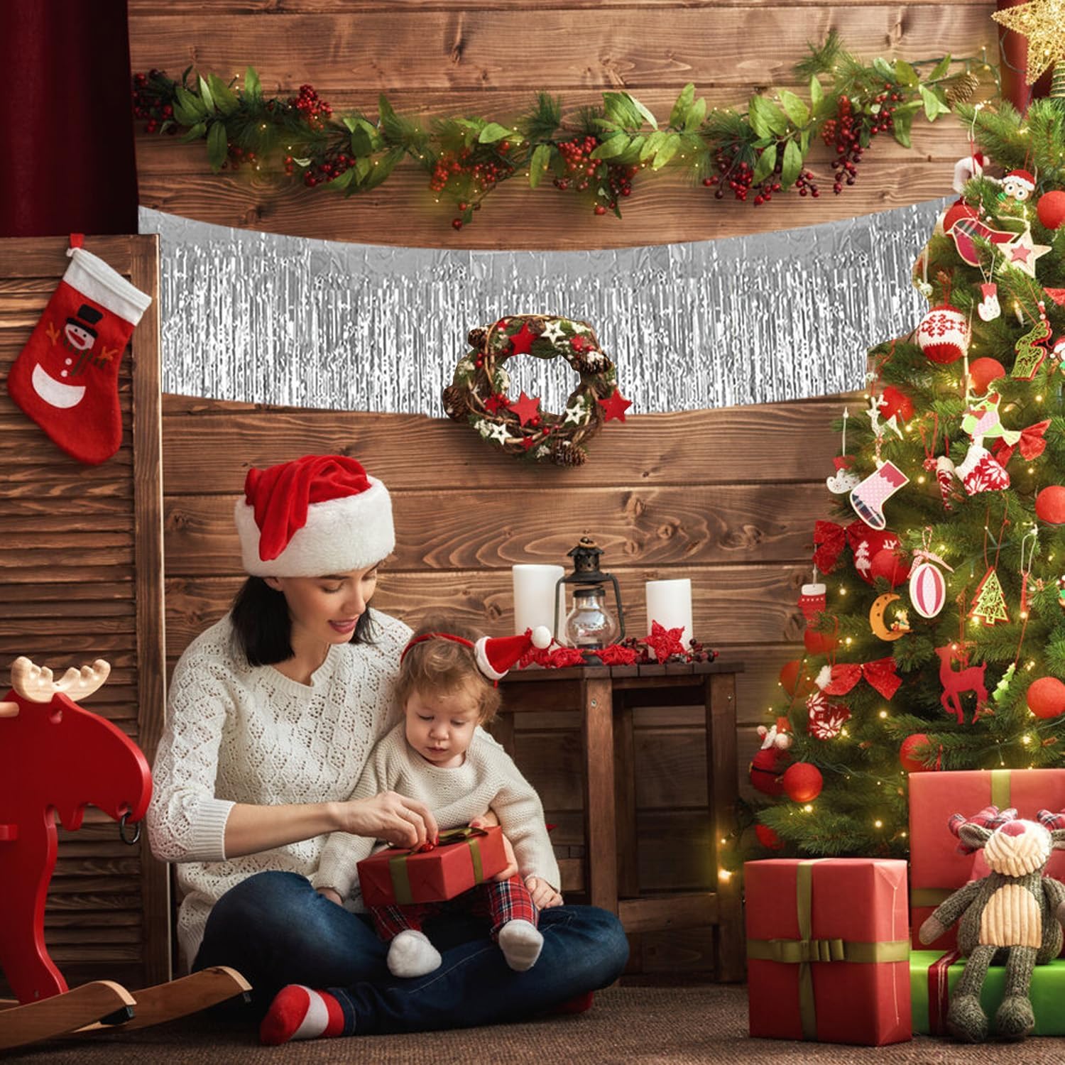 BEISHIDA 3 Packs 30 Feet Metallic Foil Fringe Garland Tinsel Streamers,Shiny Silver Wall Hanging Tinsel Fringe Banners for Wedding Birthday Party Decoration Halloween Christmas New Year