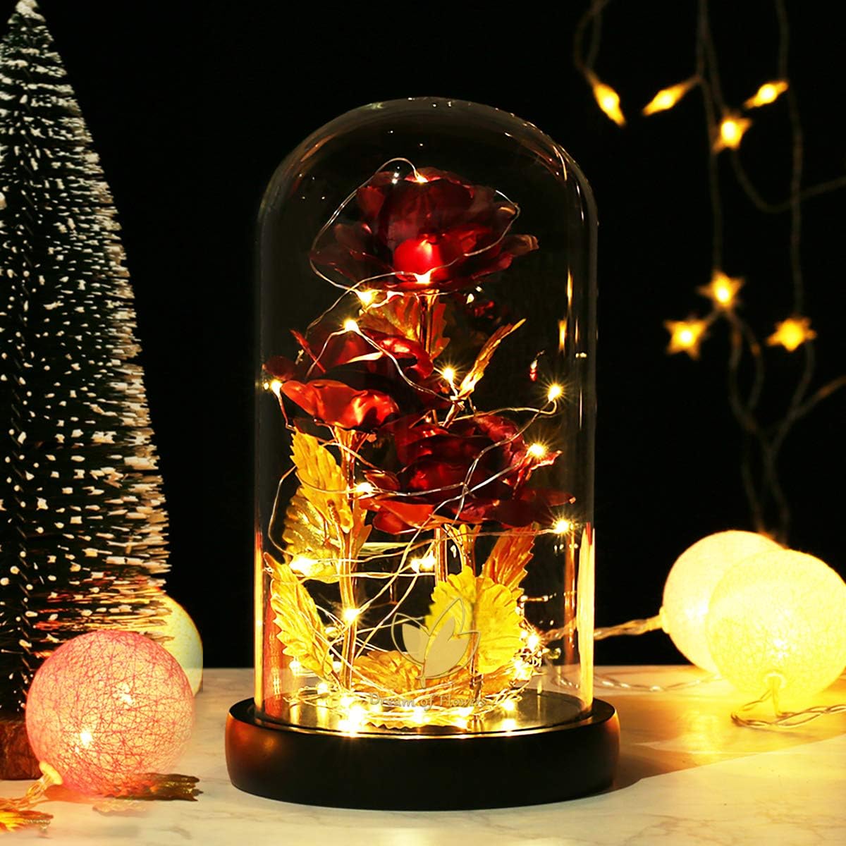 Beauty and The Beast Rose,Preserved Flowers Bouquets Gifts,Light Up Rose Flower in Glass Dome,Birthday Gifts for Women,Mom,Girlfriend Wife Anniversary,Valentines,Thanksgiving,Christmas,Wedding