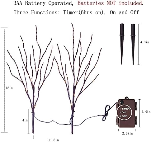 Hairui Twig Branches with Fairy LED Lights 18IN 70LED Battery Operated Lighted Brown Willow Branches for Home Witner Christmas Decoration Indoor Outdoor Use (Vase Excluded)