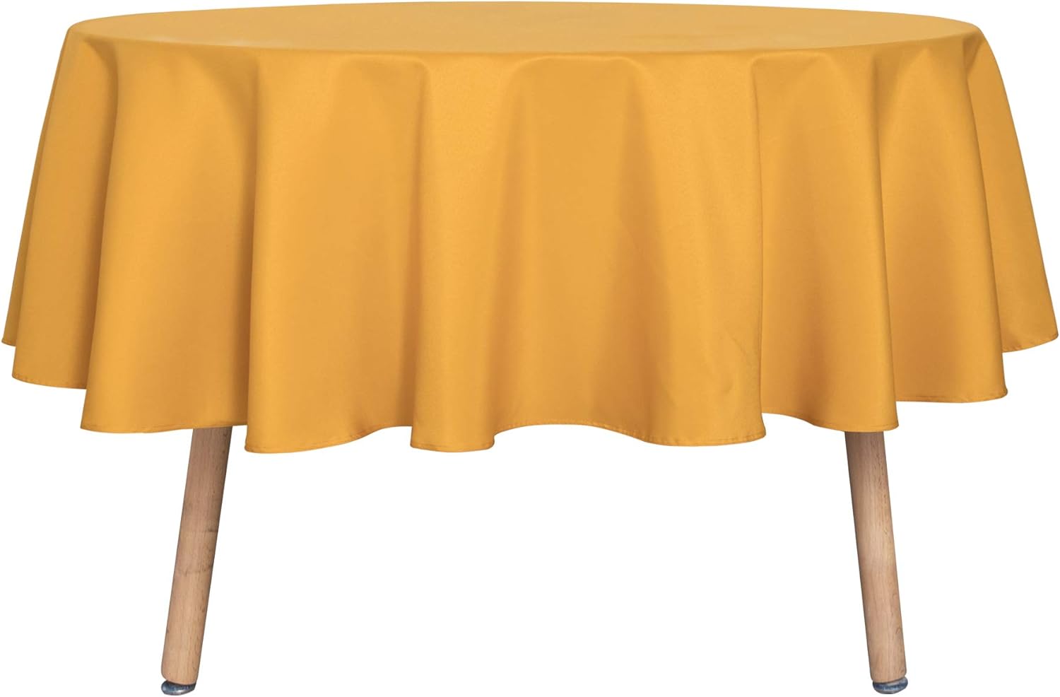 sancua Round Tablecloth - 70 Inch - Water Resistant Spill Proof Washable Polyester Table Cloth Decorative Fabric Table Cover for Dining Tables, Buffet Parties and Camping, Gold