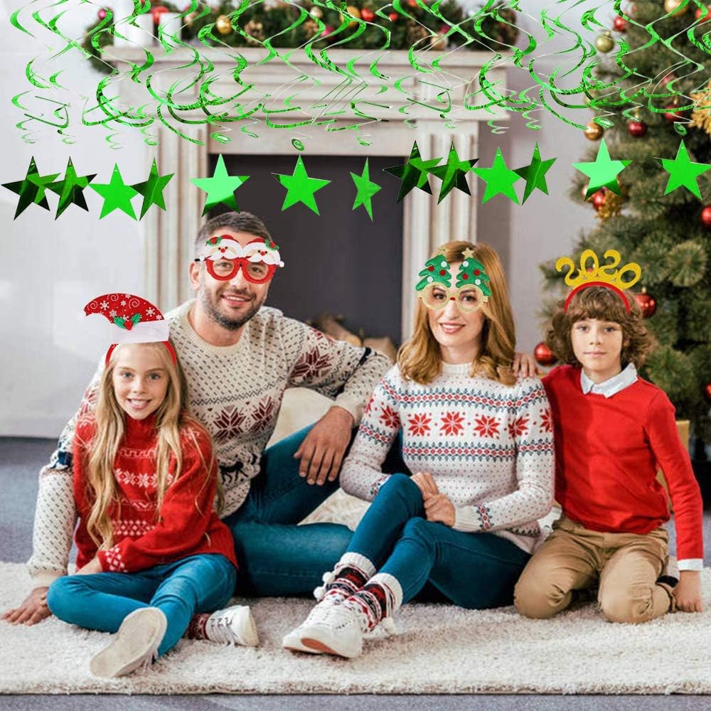 - PACKAGE INCLUDE: A total of 15 pcs hanging swirl decorations, including 15 green double swirls and 15 swirls with PVC star. There are 15 strings in total, each of which is connected with a green double swirls and a green PVC star. Flexible swirls, hanging length can extend to approx 36"/91cm long.