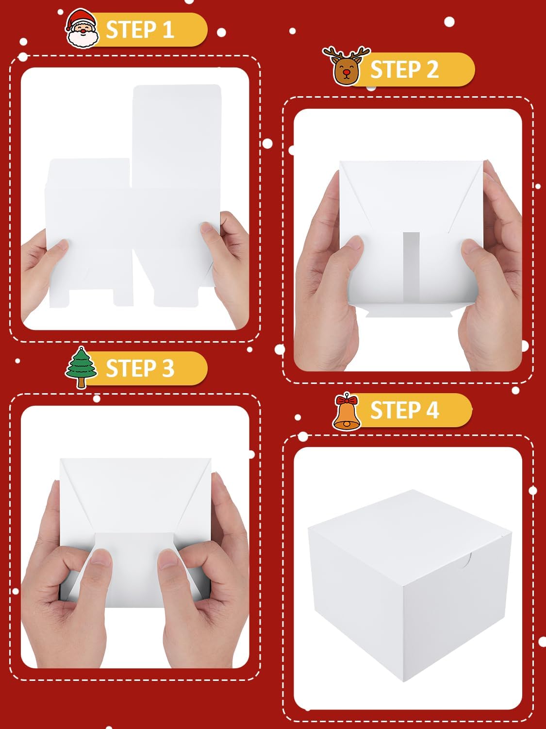 - Gift Boxes 10 Pack 8x8x4: Eupako white gift boxes are made of high quality kraft paper, sturdier and more durable than others in bearing capacity with a elaborate bottom structure. Gift Box Size: 8x8x4 Inches