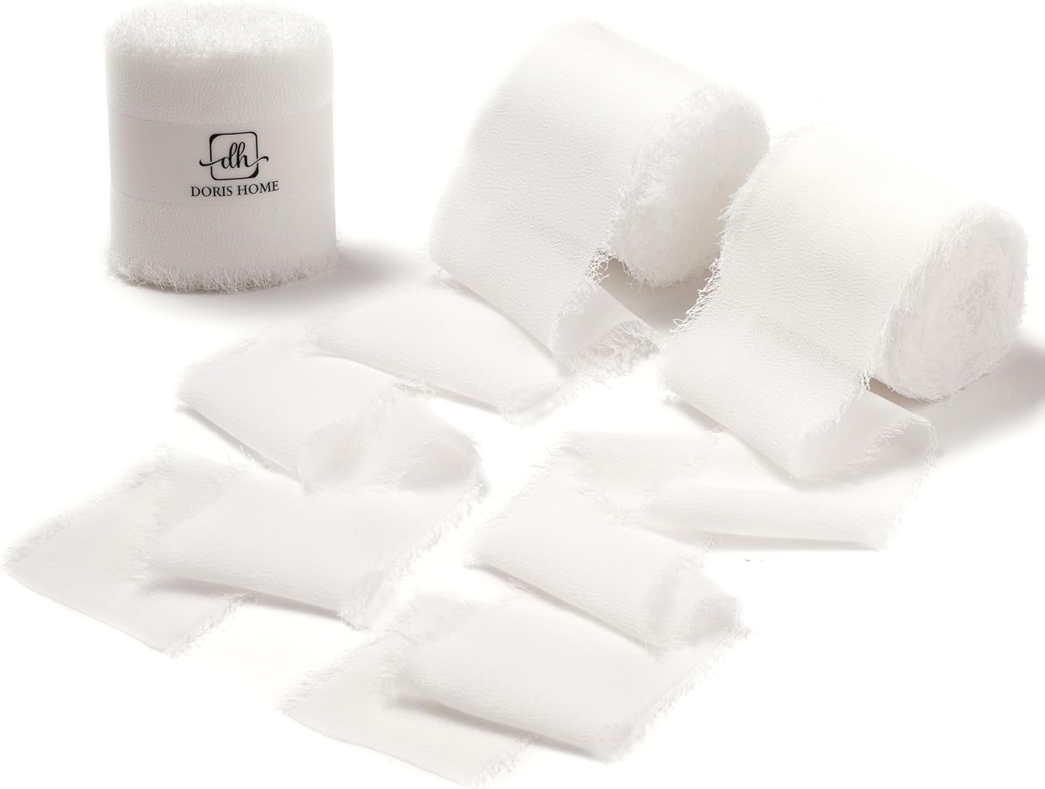 - 【Size and Color】Each roll of chiffon ribbon is 2 inches wide and 7 yards long, perfect for various creative uses such as making bows, decorating wreaths, and DIY crafts. This set includes 3 rolls ivory ribbons. These vibrant frayed ribbons add a rustic charm to your creations, ideal for bouquet wrap or gift ribbon.