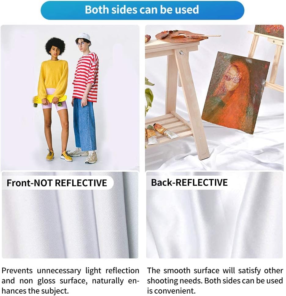 - Premium Quality Fabric: Made from 100% polyester, our white backdrop features a non-reflective front for clean shots and a reflective back for versatile lighting effects. The seamless one-piece design ensures a smooth, professional look with a soft drape