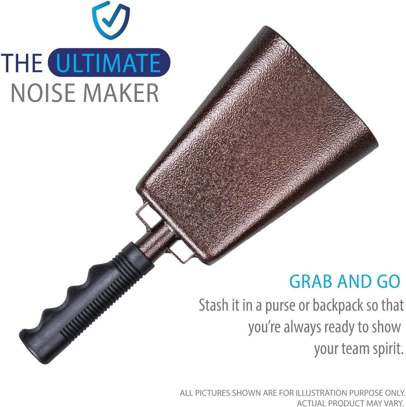 • šŸ”” Loud & Durable Steel Cowbells : Made from high-quality alloy steel, these 10-inch cow bells produce a clear, powerful sound perfect for cheering at sports games, football, and soccer events.