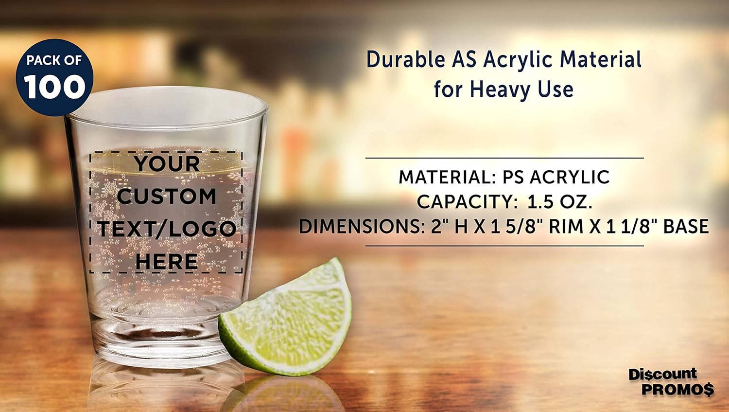 Custom Translucent Plastic Shot Glasses 1.5 oz. Set of 100, Personalized Bulk Pack - Acrylic, Great for Wedding, Party, Birthday, Gifts - Clear
