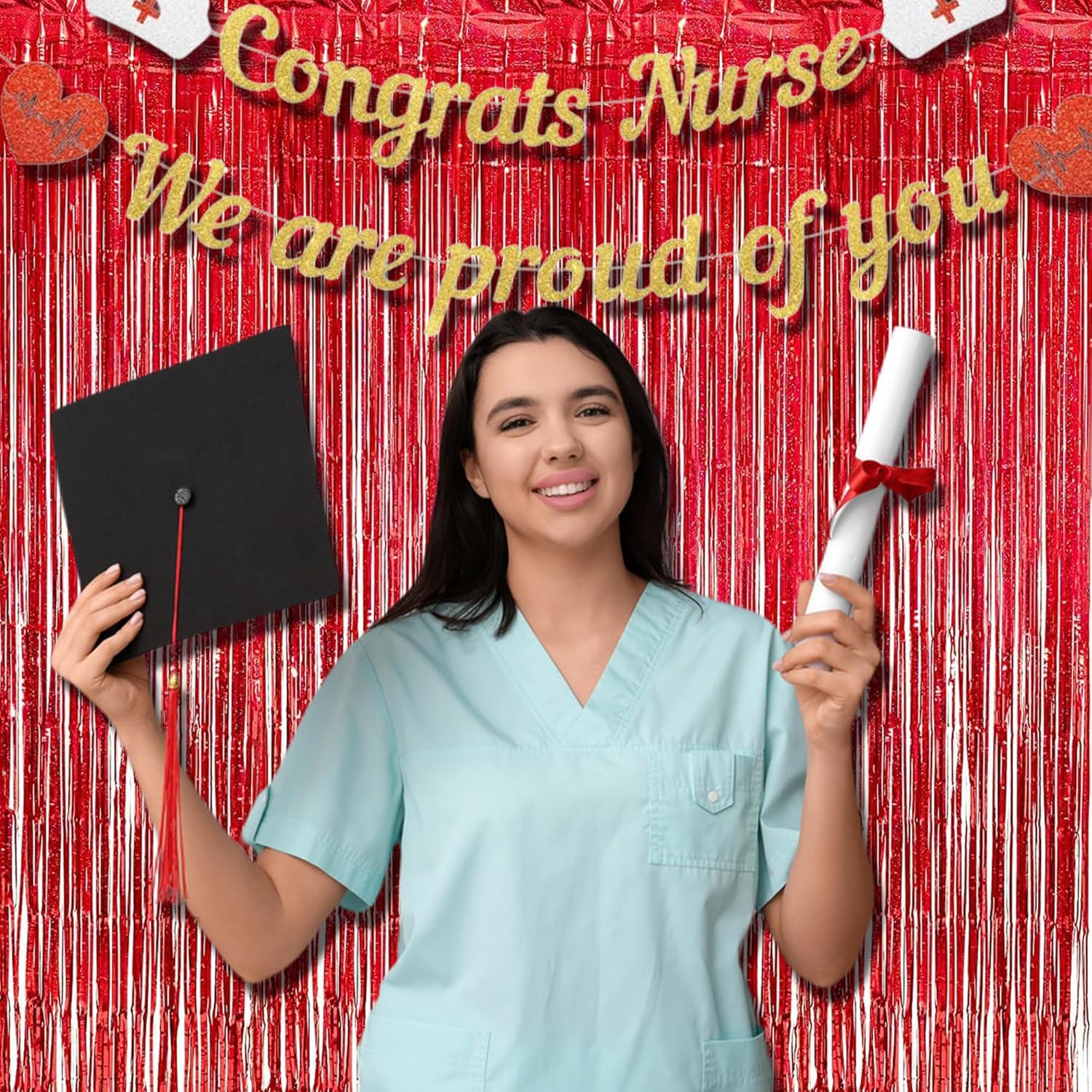 - Total 6.4 ft x 8.2 ft Metallic Tinsel Curtain. They are enough long and it cover just right for different events. Also enable to paired with valentines day balloons, banners, LED light curtains, hanging swirls, valentine photo booth props, valentines tree, valentines table centerpiece, valentine ribbon, paper fans, pom pom, valentines wreath, rose petals and heart garland decorations. It would make your party more impressive and compliments!