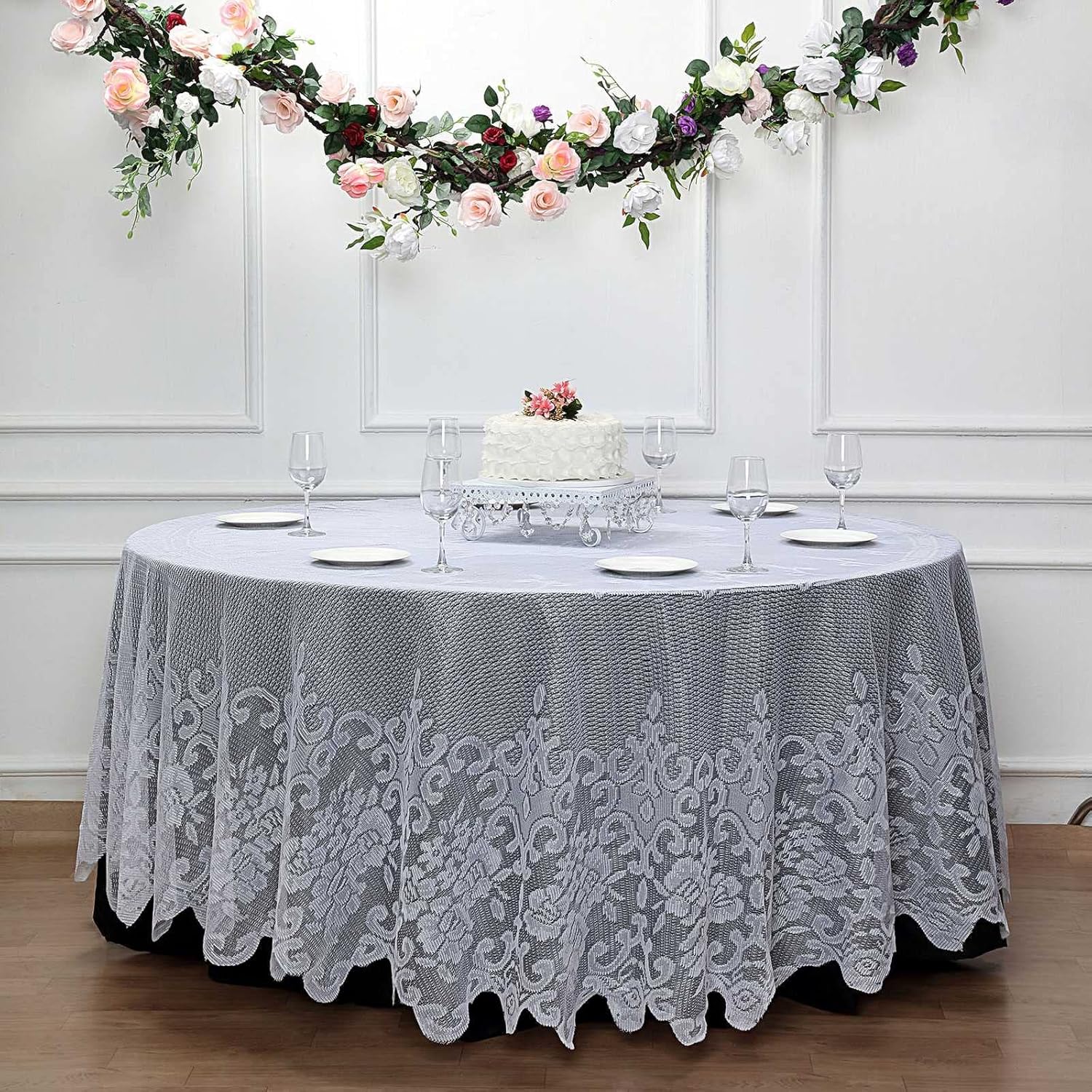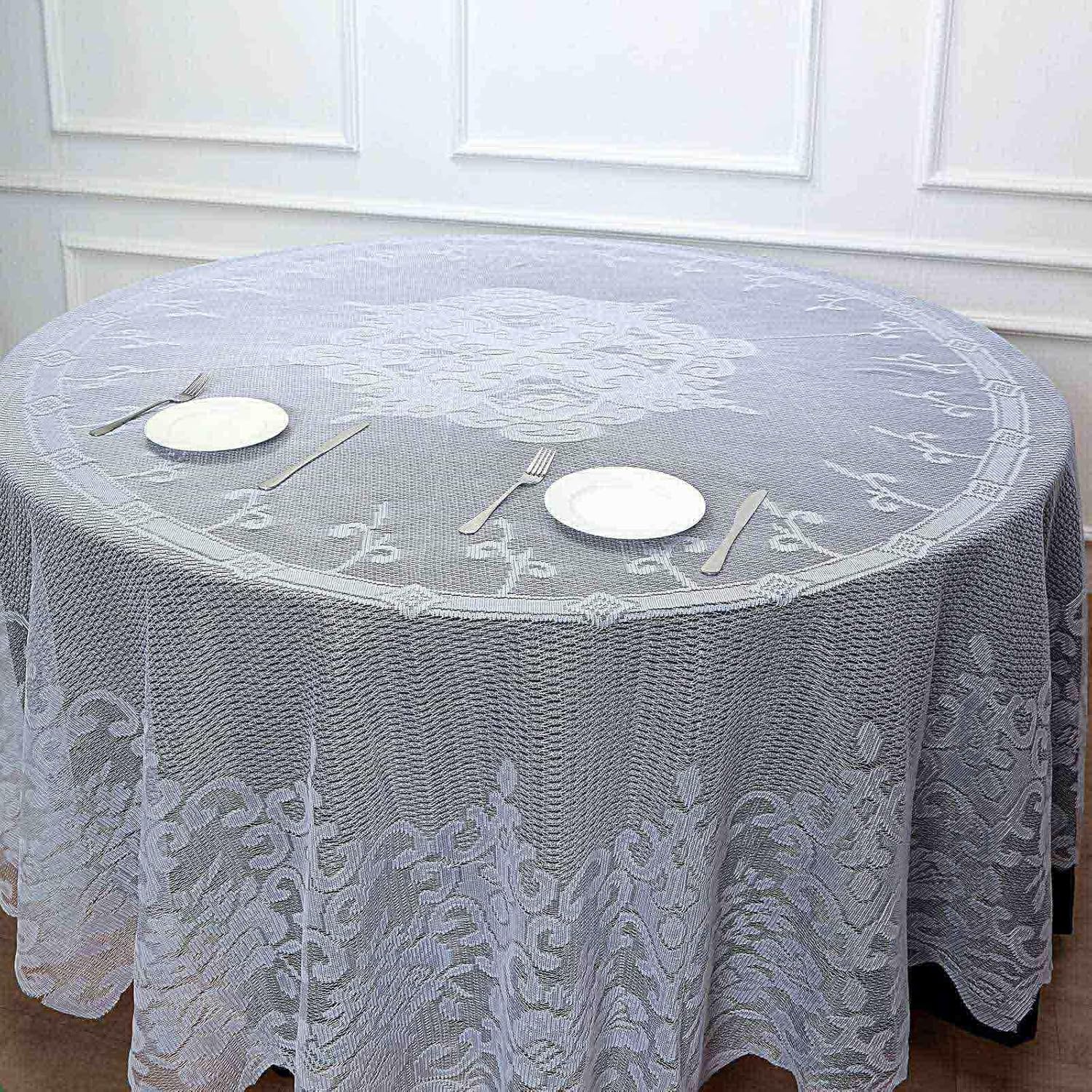 Tableclothsfactory 120" White Premium Lace Round Tablecloth for Banquet Party Wedding Event Home Decor