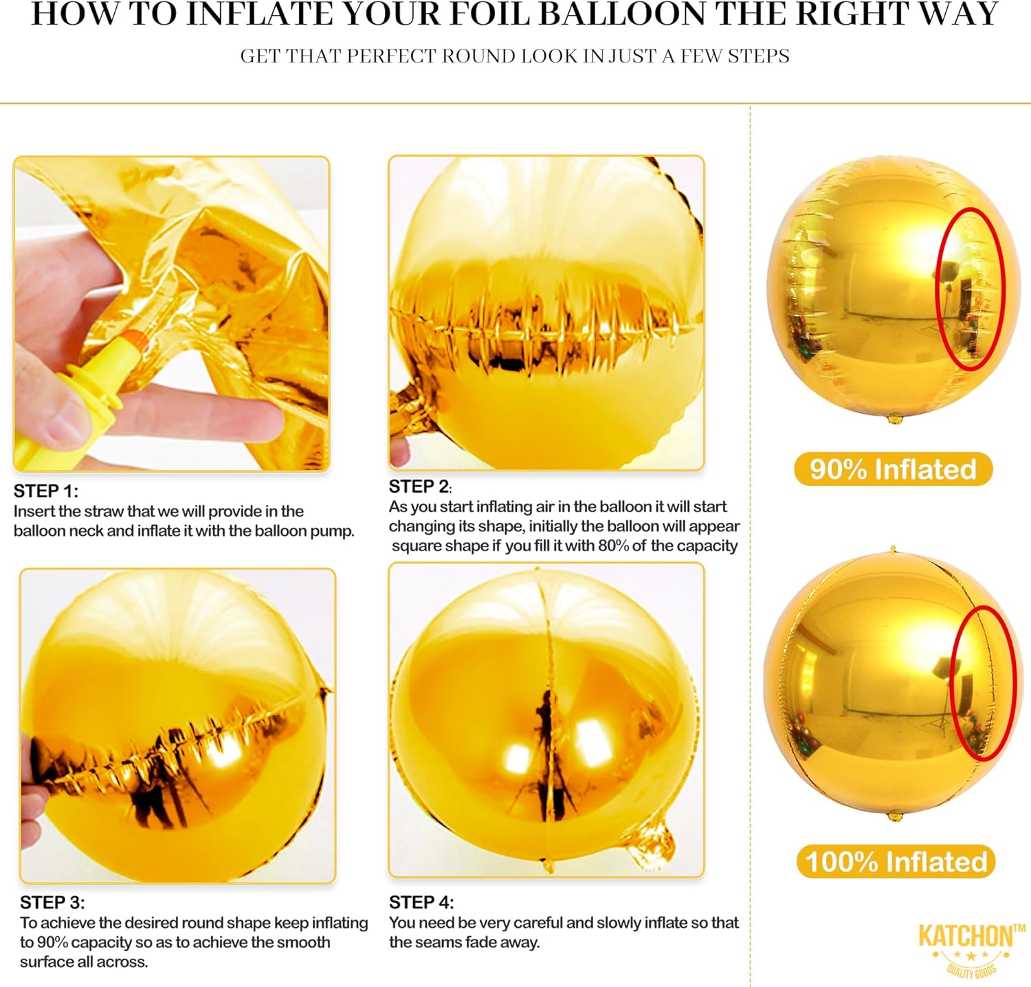 - ELEVATE YOUR EXPERIENCE - We assure you the quality, durability and style of our large gold birthday foil balloons. We care about your feedback and experience so we are going to make sure you are going to love enjoy decorating your party. Make your day more fun with these golden balloons. This big gold orb balloons will create lot of excitement for your guests. Use this gold round balloons, mylar gold balloons with black and gold mylar balloons for black and gold birthday decorations, thanksgiving decor for home, fall party decorations, new years eve mylar balloons, or gold inflatable balls.