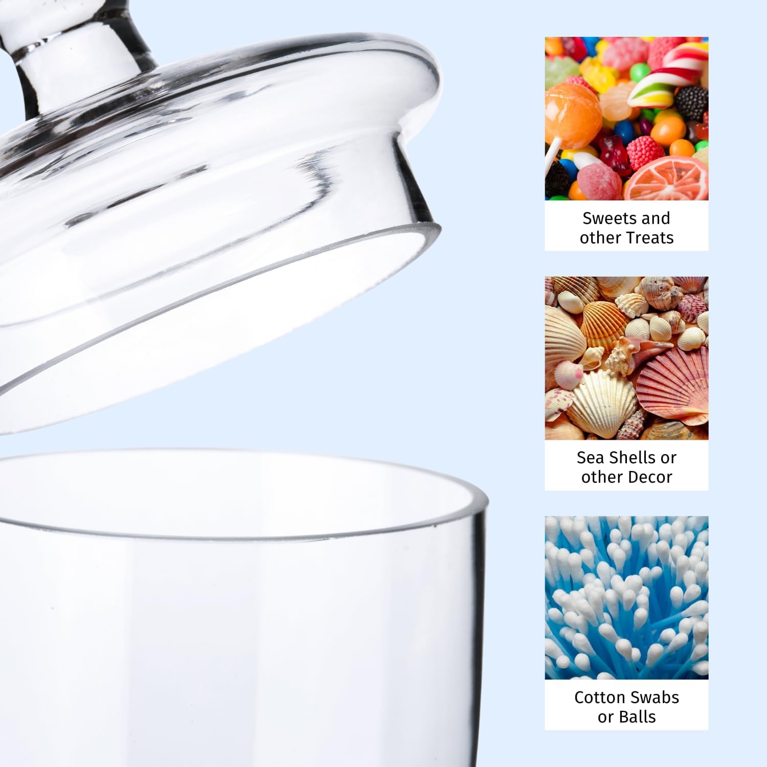 - MODERN ELEGANCE: These glass apothecary jars with lid are perfect for a variety of settings, from bathroom and kitchen storage, to home and venue decoration, garden floral and glass container displays and more. The uses for these decorative glass jars are endless!