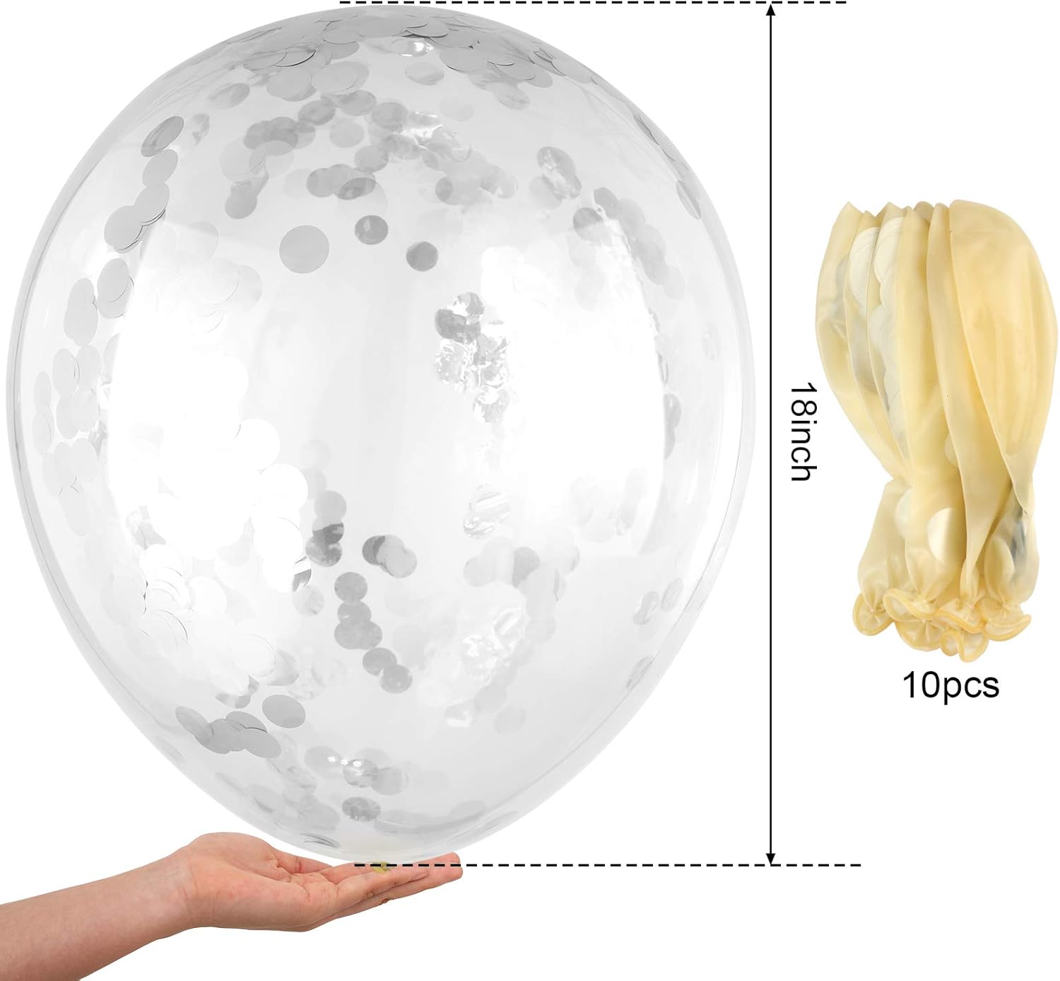 10 Pieces 18 Inch Glitter Confetti Balloons Paper Dots Confetti Shiny Latex Large Balloons for Birthday Wedding Party Decorations(Silver)