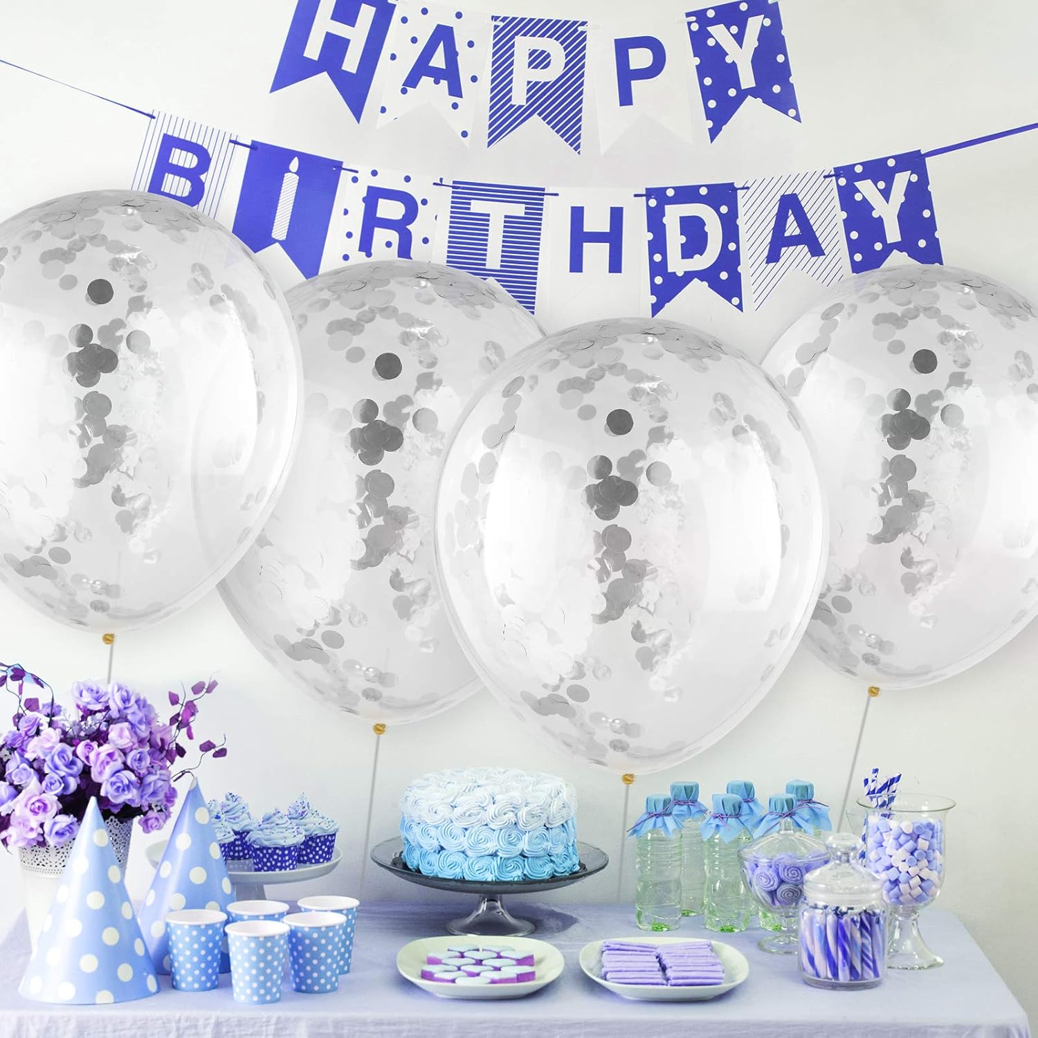 - Glitter confetti balloons: these large latex balloons are designed in classic silver confetti dots, which symbolizes the bright future and good wishes, you can use them to decorate your home or party, regardless of indoors or outdoors, these shiny confetti balloons can provide you with attractive and charming atmosphere