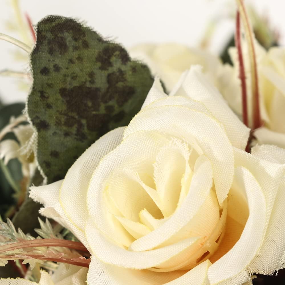 - [ PACKAGE ] : 3 pack of roses bunch,1 bunch of greenery stems,1 ceramic vase.