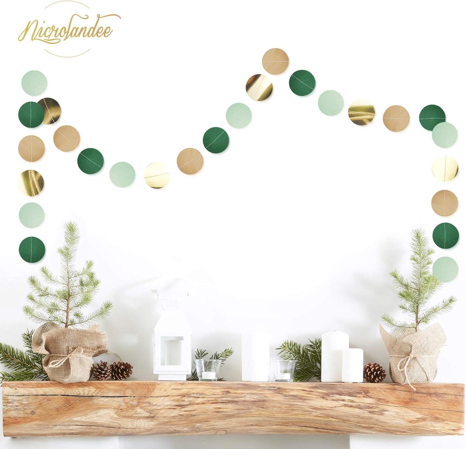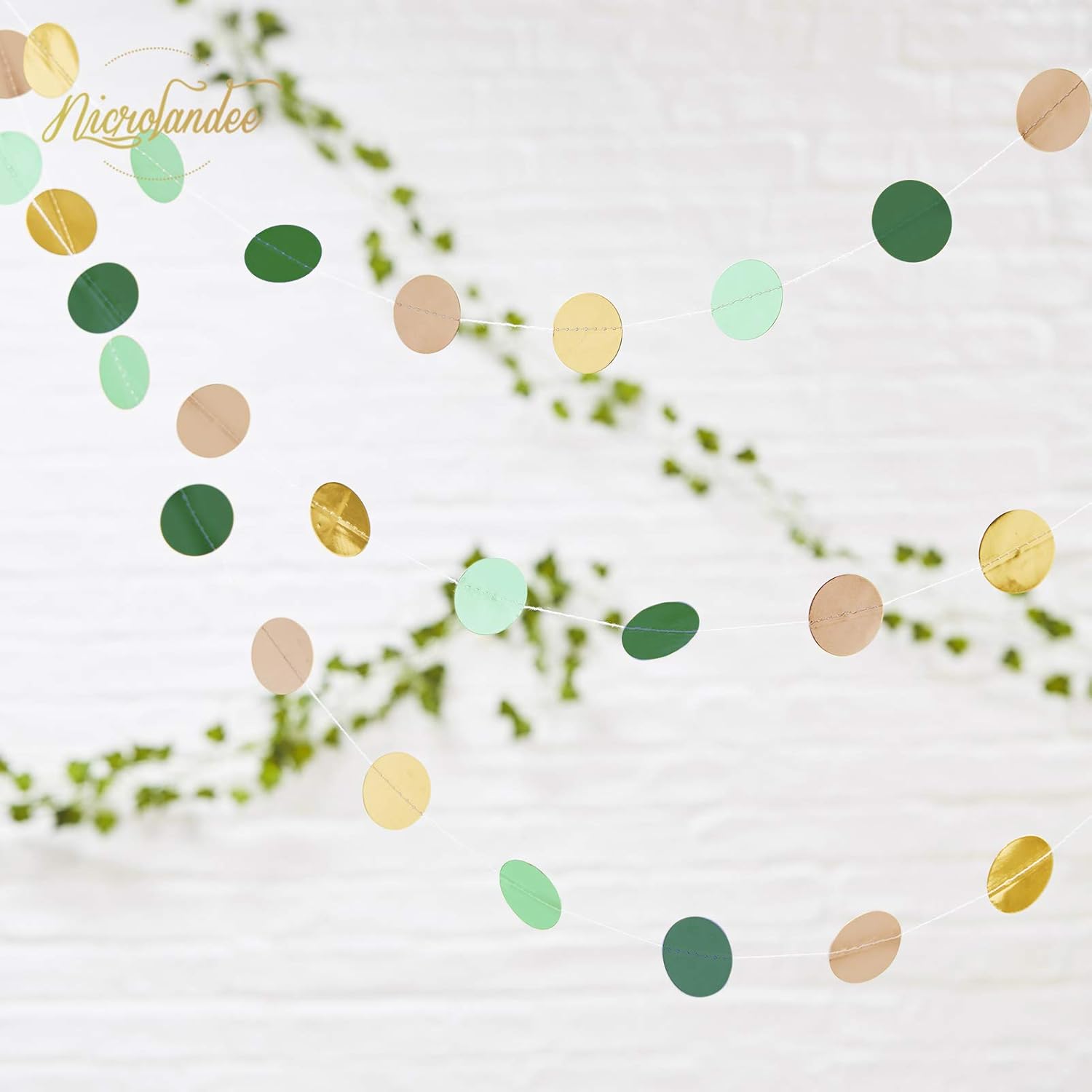 NICROLANDEE Wedding Party Decorations - 3 Pack Sage Green Dots Paper Garland String Hanging Backdrop for St Patricks Day Rustic Wedding, Neutral Baby Shower, Vintage Party, Birthday, Engagement
