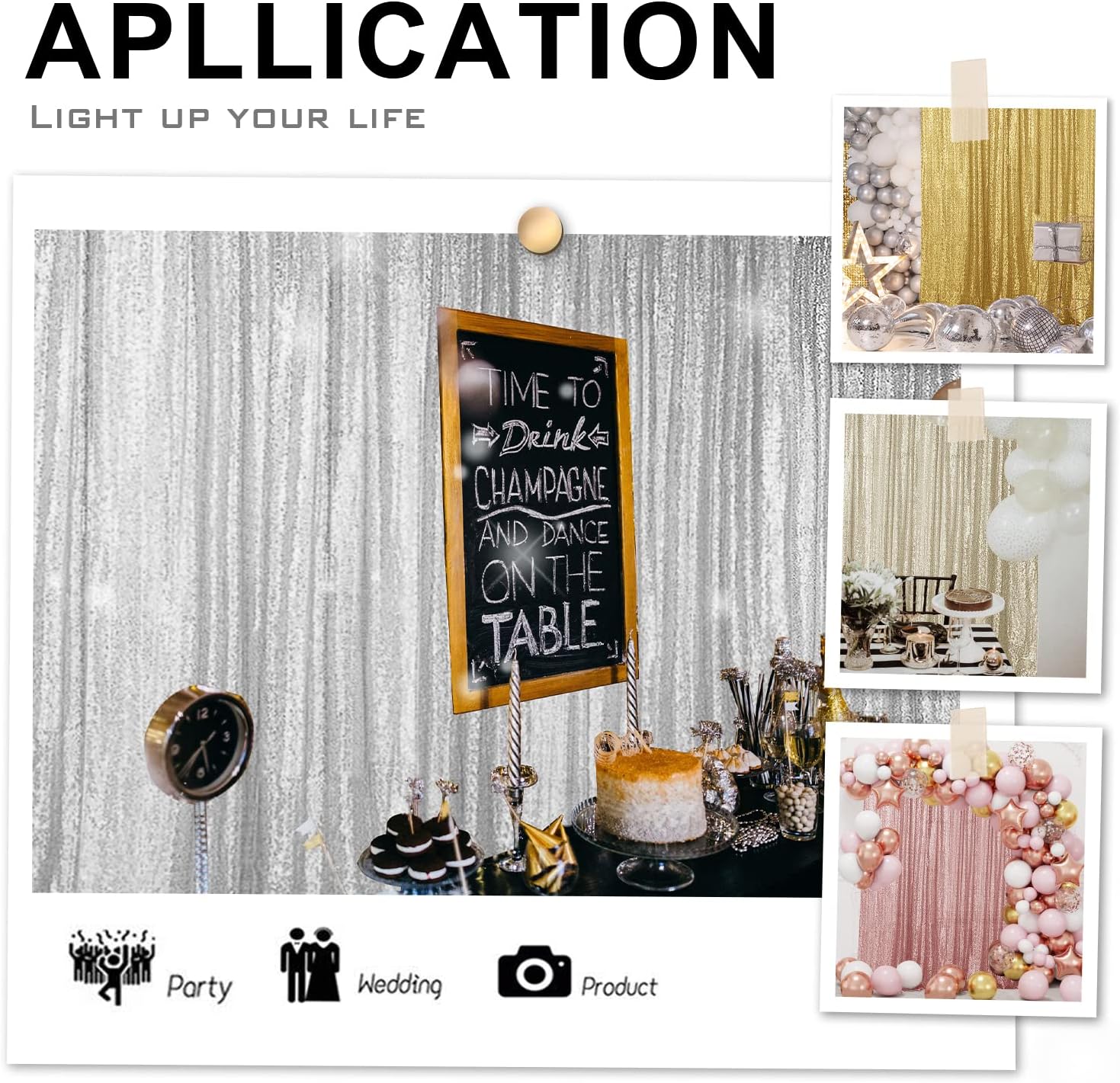 - 【MULTIPLE USES】: The sequin backdrop is Perfect for wedding, party, bridal and baby showers, photography, birthday, Christmas, Prom, home decor, candy buffets, other event decor, and many more