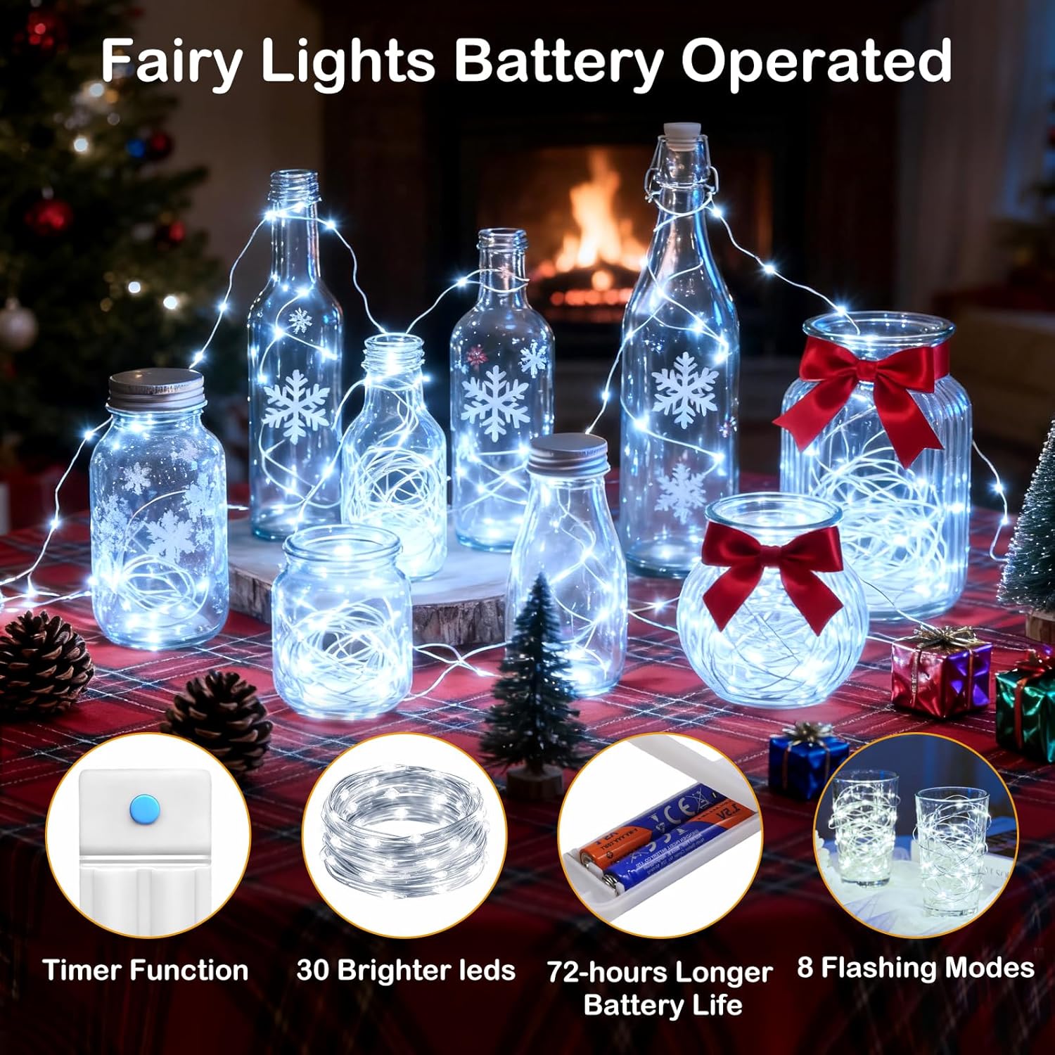 ZNYCYE 50 LED Fairy Lights with Timer, 6 Pack 8.2Ft 8 Modes Battery Operated Fairy Lights, Mini Led String Lights for DIY Wedding Bedroom Mason Jar Vases Table Party Christmas Decoration (Cool White)