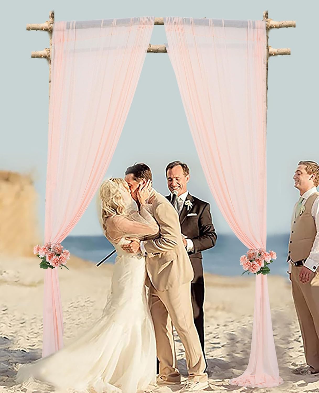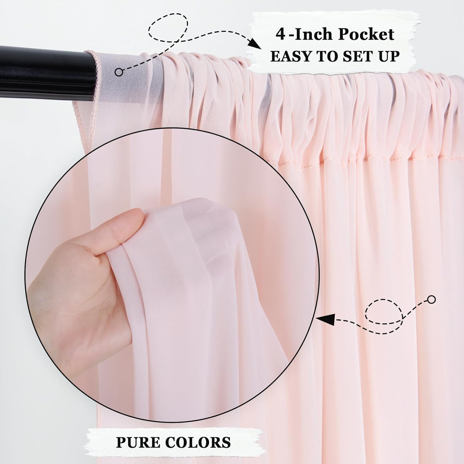 - ★ SHEER CHIFFON CURTAINS :Includes 2 Panels Width 29'' by 96'' Long chiffon backdrop curtain Peach Sheer Curtains For Wedding Photography Backdrop.