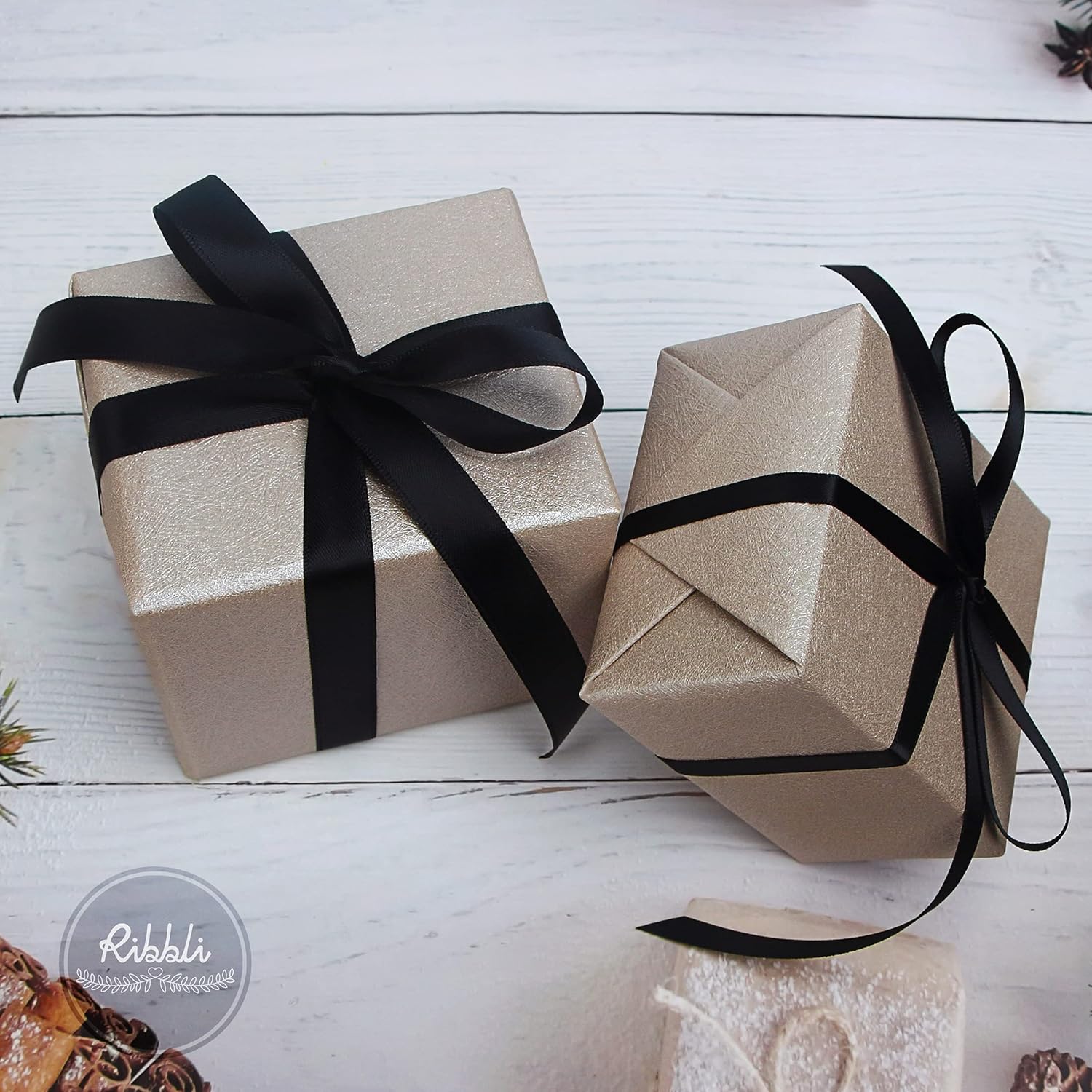 Ribbli Double Faced Black Satin Ribbon,1/4” x Continuous 25 Yards,Use for Bows Bouquet,Gift Wrapping,Floral Arrangement
