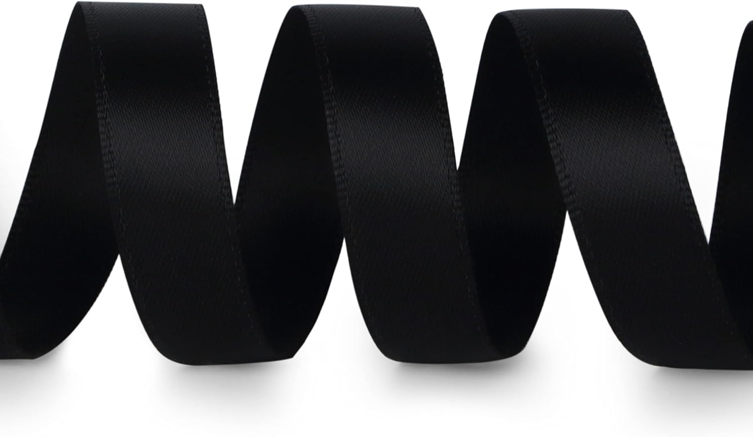 Ribbli Double Faced Black Satin Ribbon,1/2” x Continuous 25 Yards,Use for Bows Bouquet,Gift Wrapping,Floral Arrangement