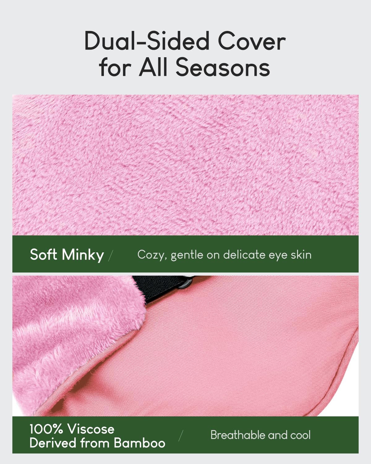 - Dual-Sided Comfort: This weighted sleep mask boasts a double-sided reversible design for year-round comfort. Enjoy the breathable, cooling fabric on one side and the soft, warm plush on the other. Certified by OKEO-TEX, it’s safe and gentle on your skin.