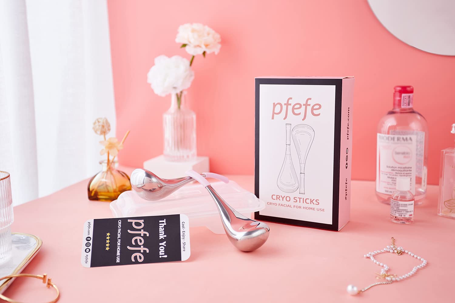 pfefe Cryo Sticks Facial Skin Care Ice Globes for Women Face Eyes, Stainless Steel Face Beauty Tools for Girls Ladies, Esthetician Supplies Cooling Spa Globes with Storage Case