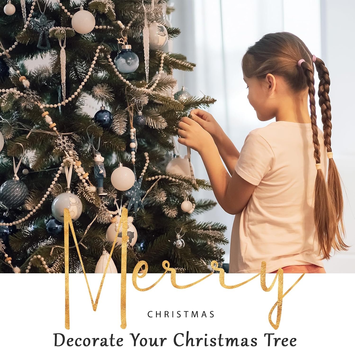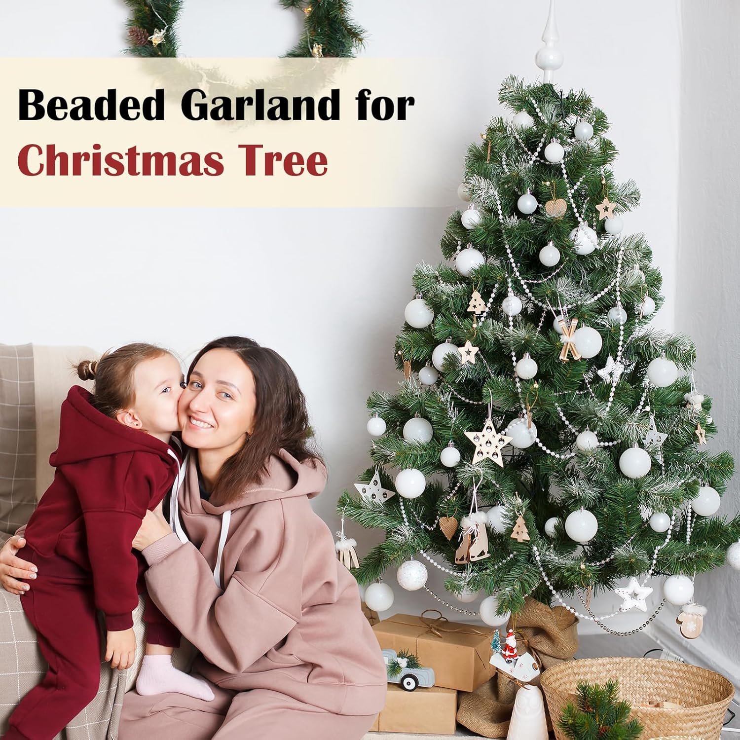 Craft String Pearls 6MM Pearl Bead, 66 Feet Ivory Faux Pearl Garland Spool Roll Strand Wedding Party Decoration, Christmas Tree Decorations