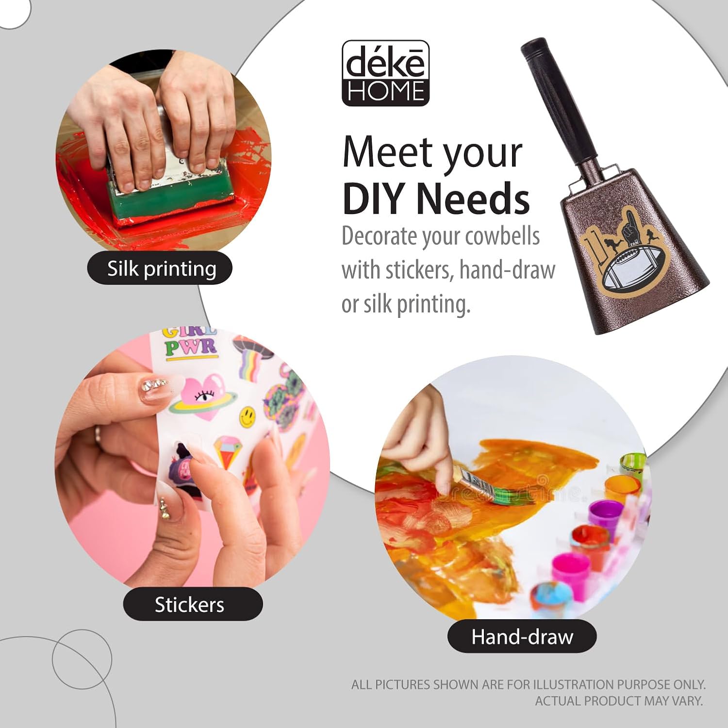 Deke Home - 2 Pack 7 Inch Steel Cowbells with Handle, Loud Noise Makers for Football, Sports, Parties, Competitions, School Spirit & Safety, Large Hand Bell for Cheering & Percussion Instrument
